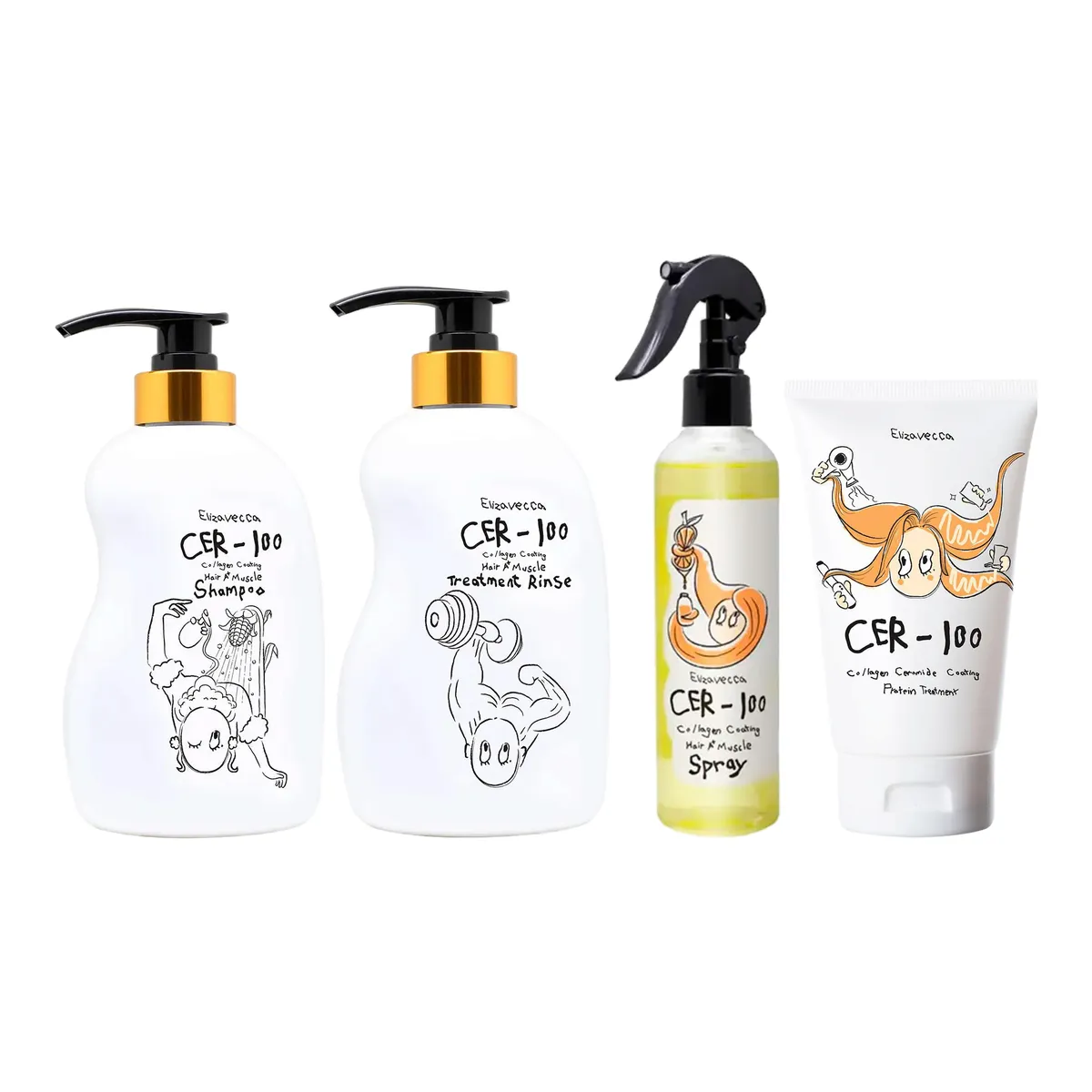 Kit Elizavecca Cer-100 Collagen Coating Hair A+ Muscle Shampoo 500ml + Condicionador Treatment 500ml + Máscara de Cabelo Tratamento 100ml + Leave-In Cabelos Secos e Ásperos 250ml