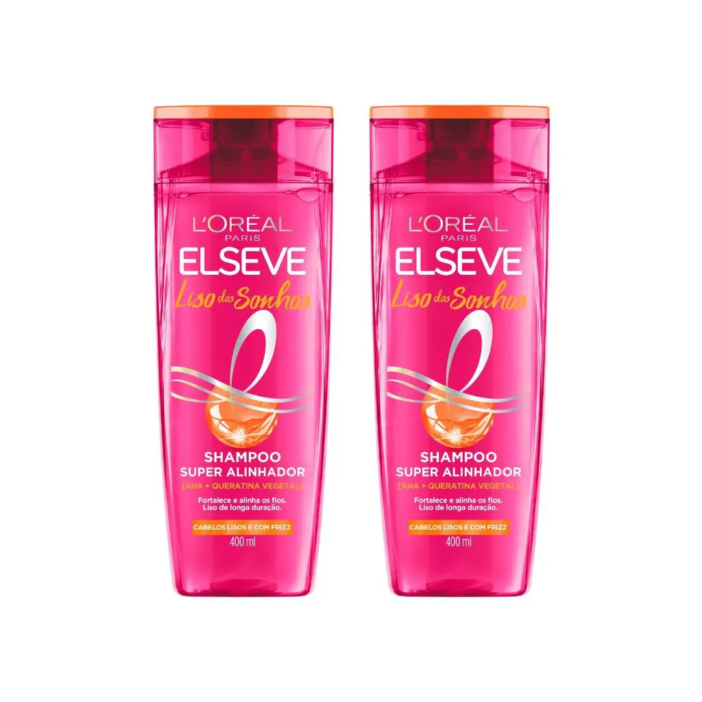 Kit Elseve Liso dos Sonhos – 2x shampoos Super Alinhadores de 400ml cada Descrição Garanta fios mais lisos, alinhados e sem frizz com o Kit Elseve Liso dos Sonhos, que contém 2 unidades do shampoo Super Alinhador. Ideal para quem busca um liso duradouro com movimento natural e fios fortalecidos desde a lavagem. Sua fórmula limpa suavemente enquanto prepara os cabelos para o alinhamento perfeito, reduzindo o frizz e promovendo maciez e brilho intenso. Benefícios: