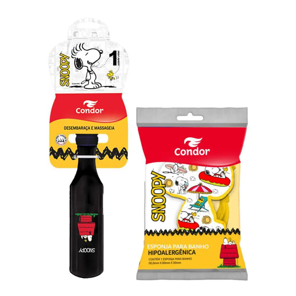 Kit Escova para Cabelo + Esponja para Banho Snoopy Condor