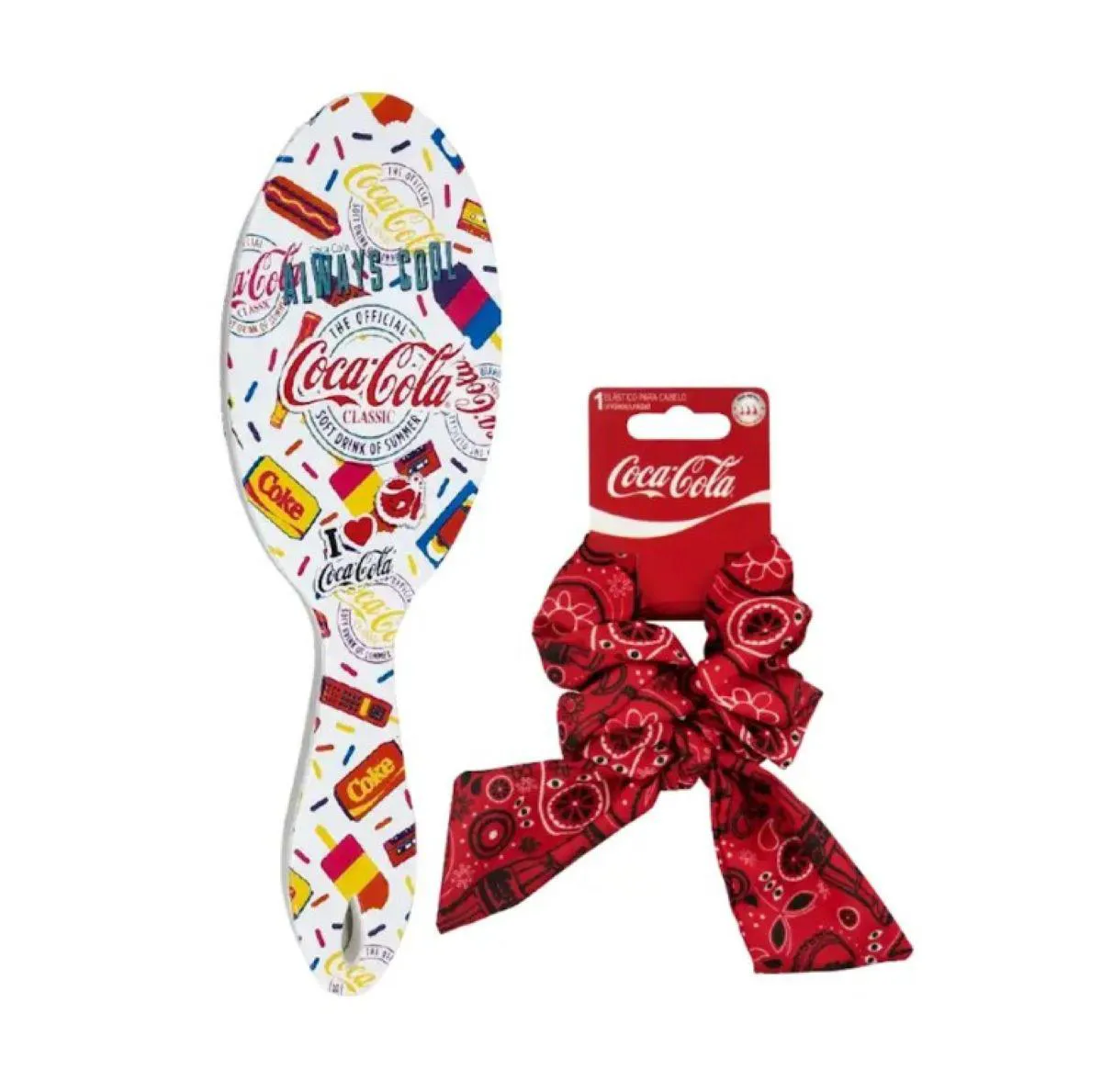 Kit Escova para Cabelo Oval + Elástico para Cabelo Coca-Cola Condor