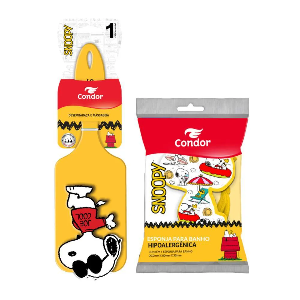 Kit Escova para Cabelo Raquete + Esponja para Banho Snoopy Condor