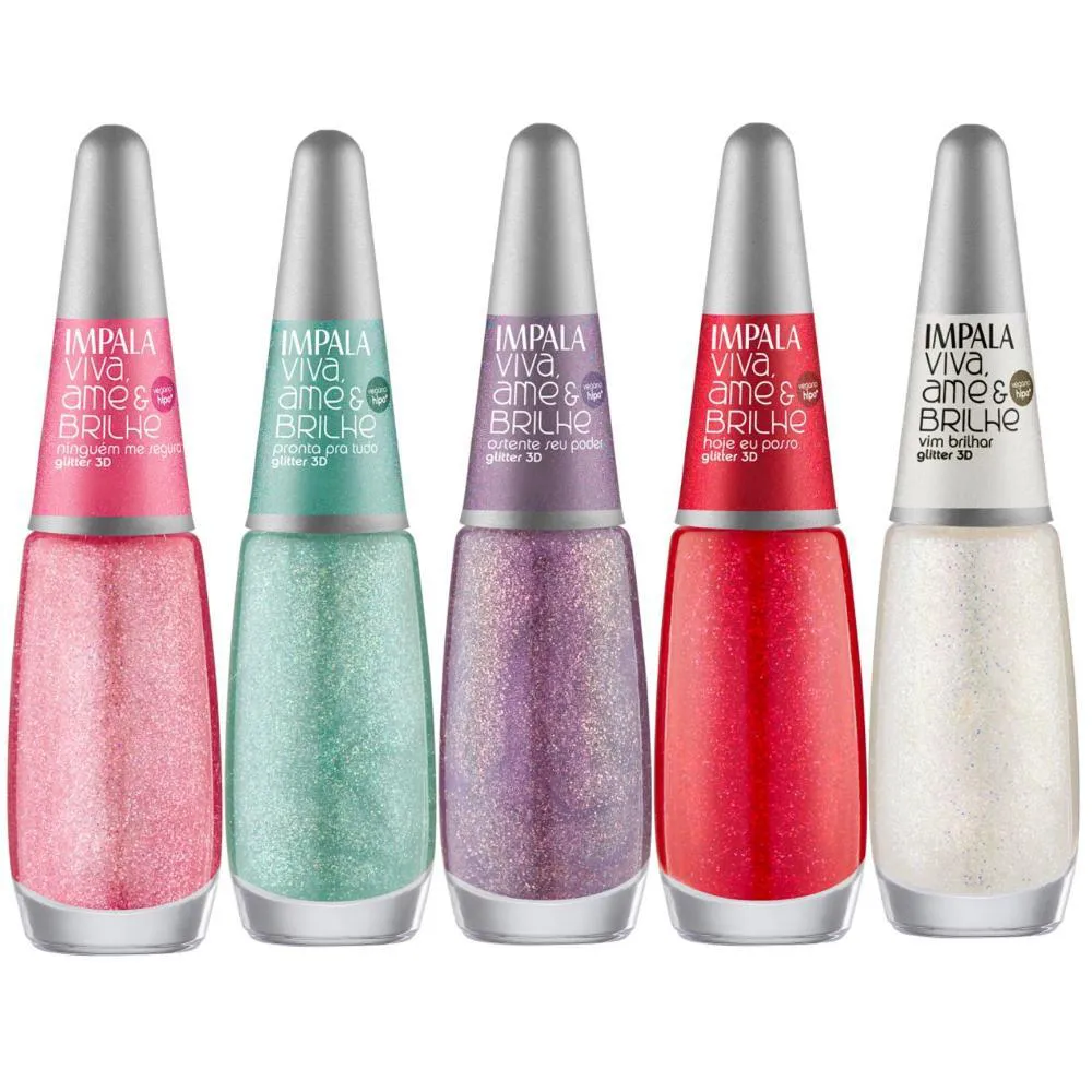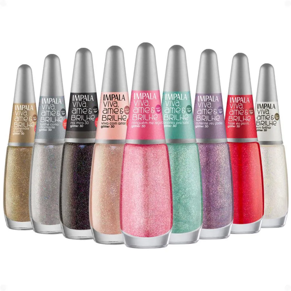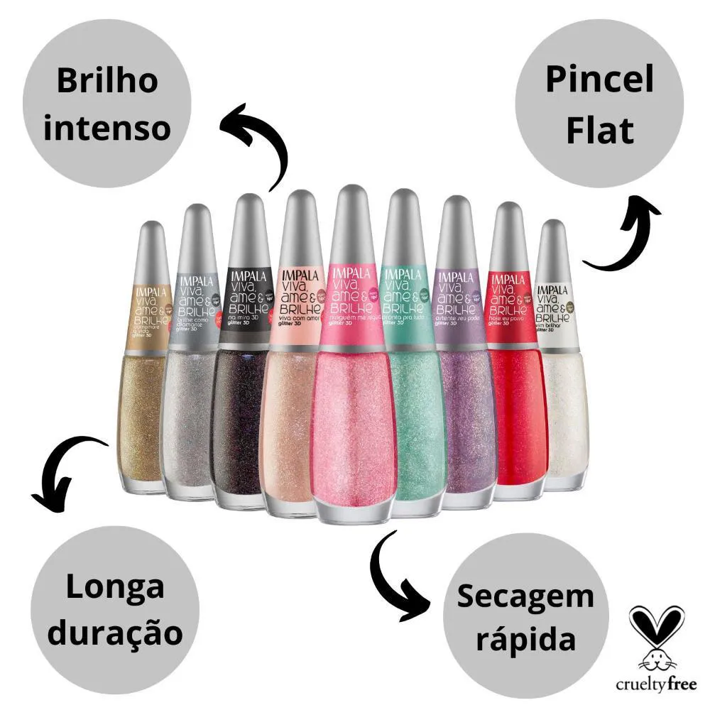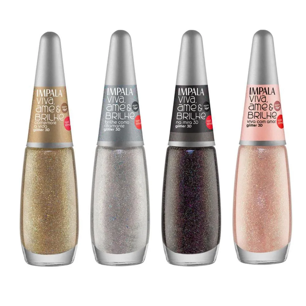 Kit Esmalte Glitter 3D Impala Viva, Ame e Brilhe Com 9 7,5ml