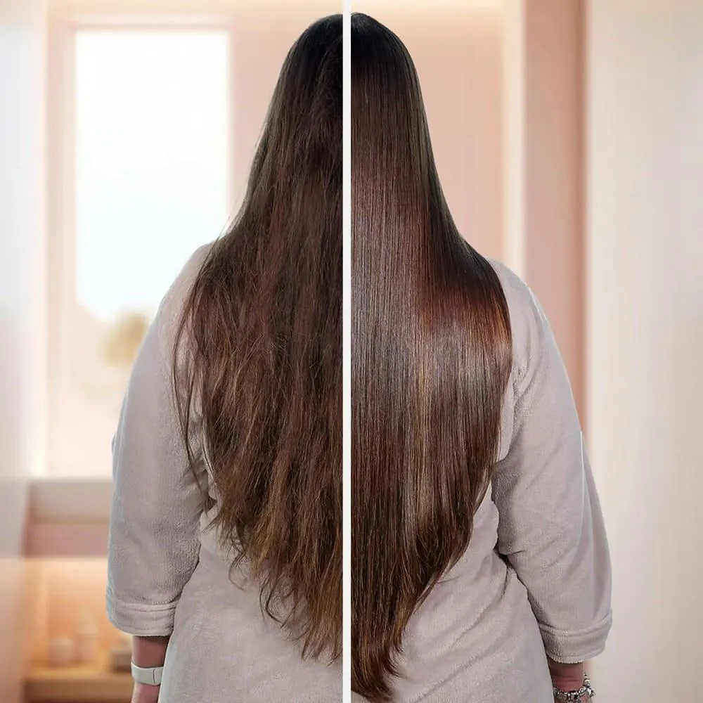Cabelos nutridos, alinhados e com brilho intenso, livres do frizz e com a maciez que você sente ao toque.Contém