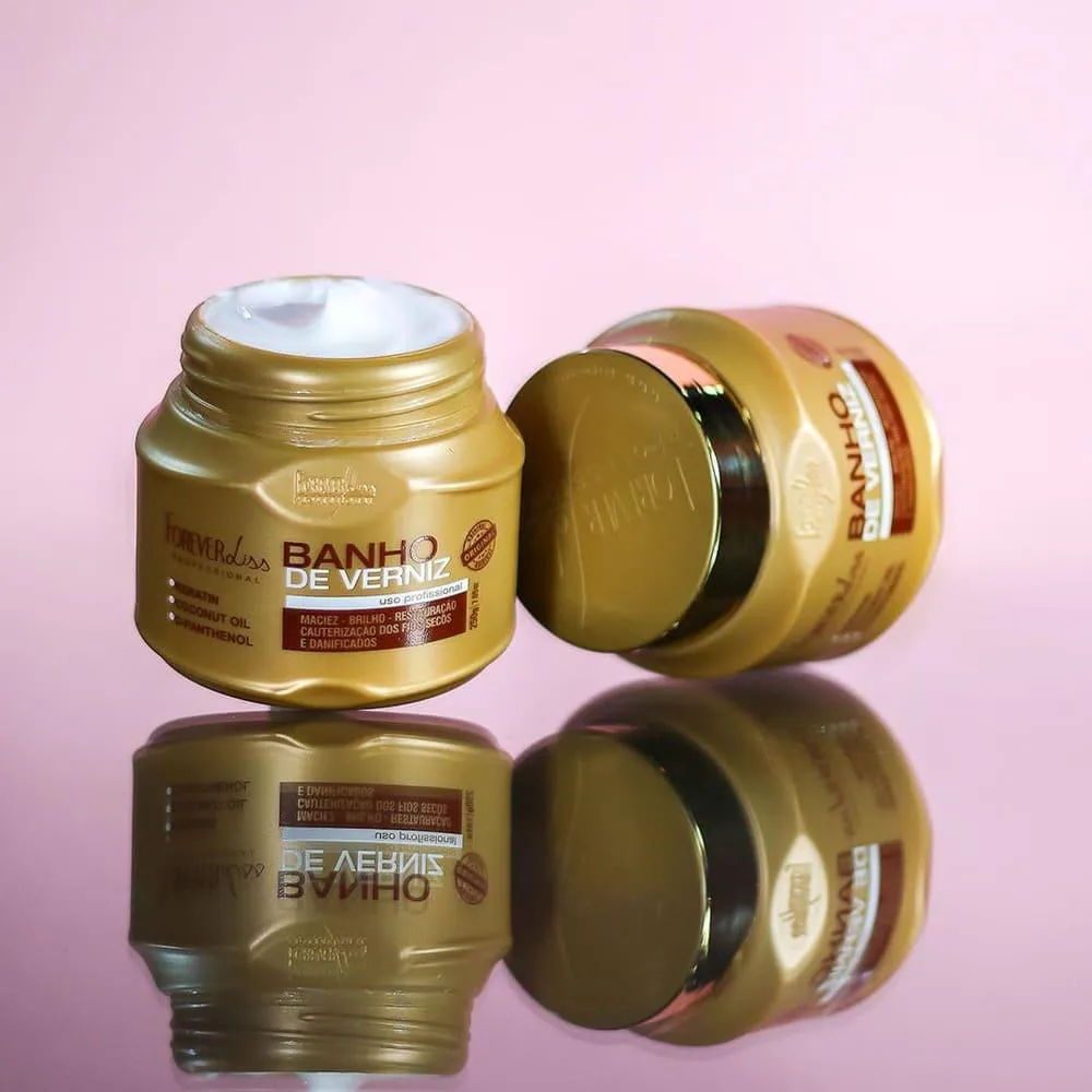 O Kit banho de Verniz Forever Liss combina limpeza suave e tratamento intenso para restaurar cabelos opacos, ressecados e sem vida.