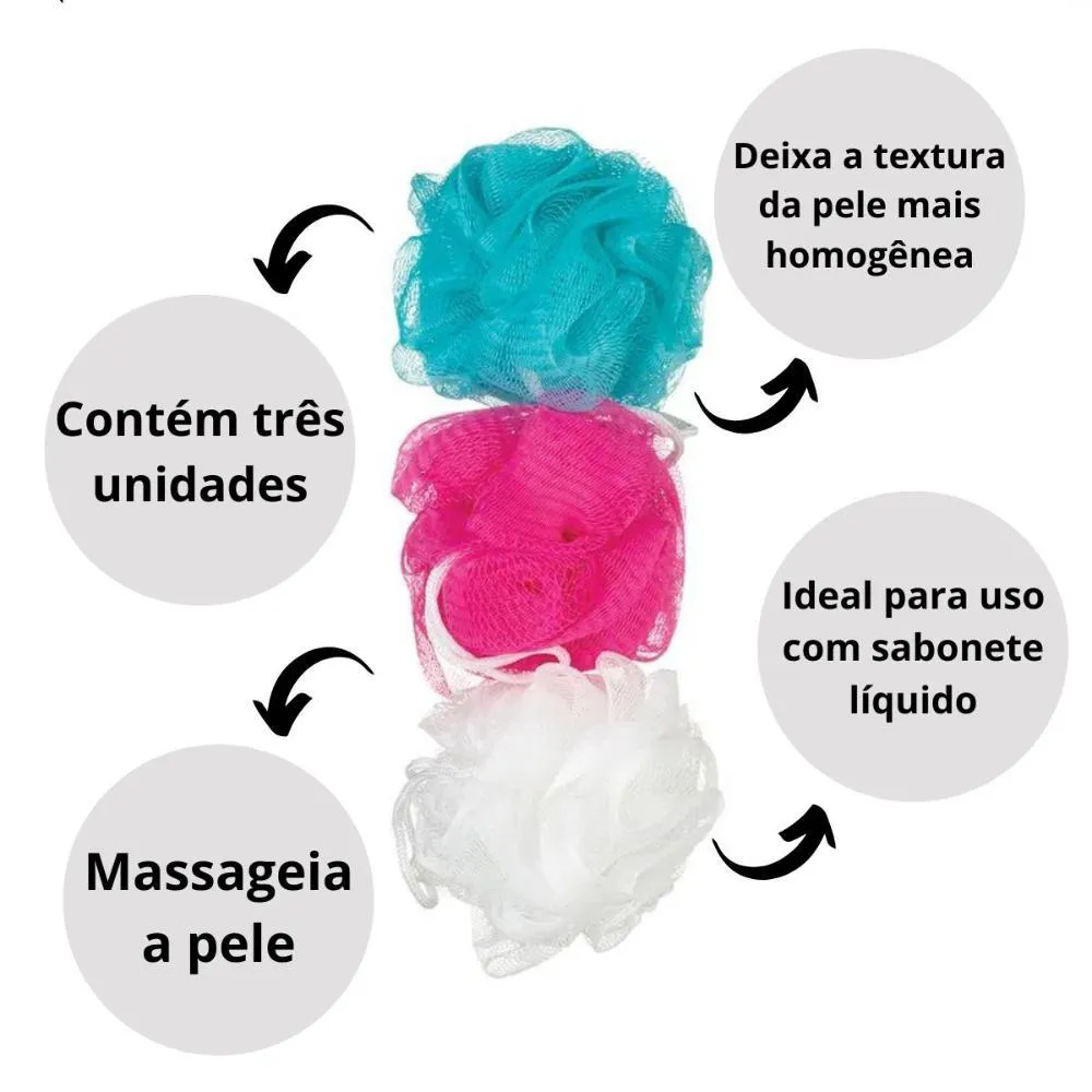 Kit Esponja de banho A esponja para banho Ricca é ideal para uso com sabonete líquido! Massageia a pele, ajudando a ativar a circulação sanguínea além de estimular a renovação celular, melhorando a aparência e deixando a textura da pele mais homogênea. Contém três unidades. . Modo de Uso Umedeça a esponja em água e aplique o sabonete de sua preferência. Massageie a pele com movimentos circulares. . Composição Polietileno.