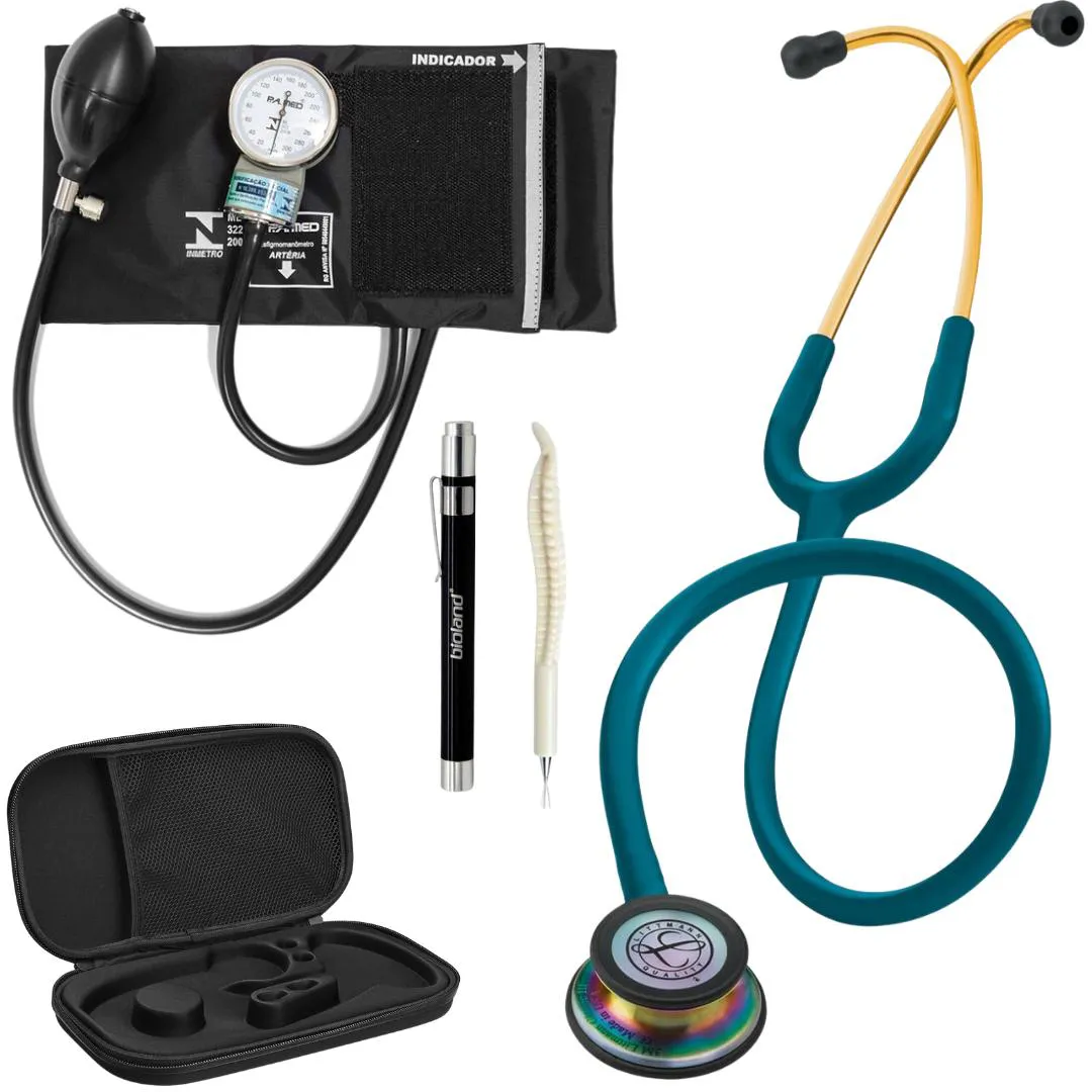 Kit Estetoscópio Littmann Classic Iii + Esfigmomanômetro + Case + Lanterna Clínica + Caneta de Osso