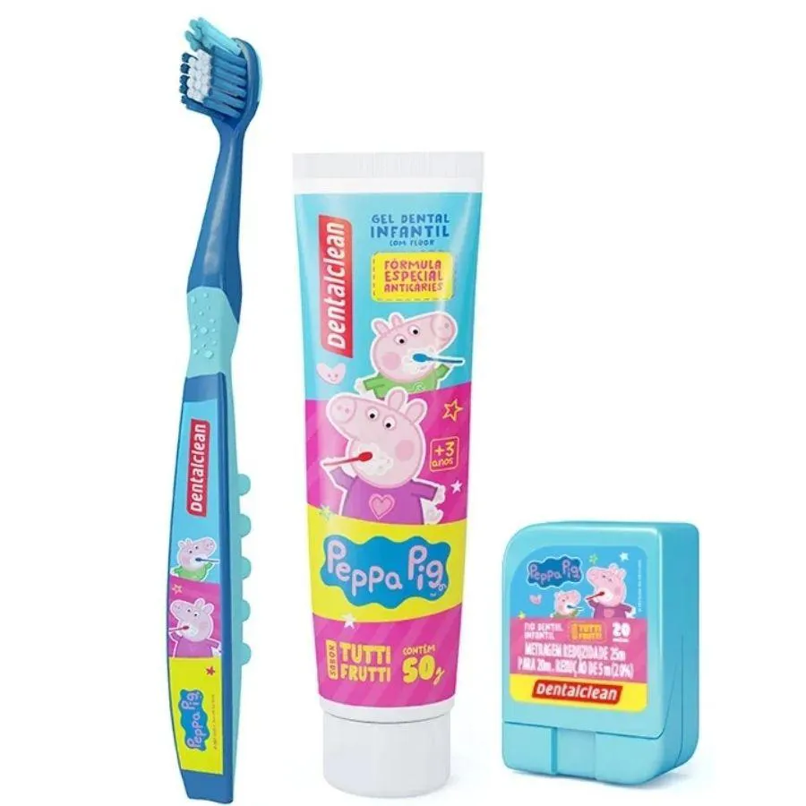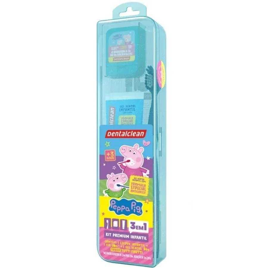 Kit Estojo Infantil Peppa Pig Azul ( 1 Escova Infantil + 1 Fio Dental 20M + 1 Gel Dental 50G ) - Dentalclean