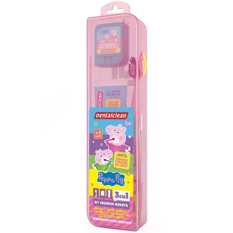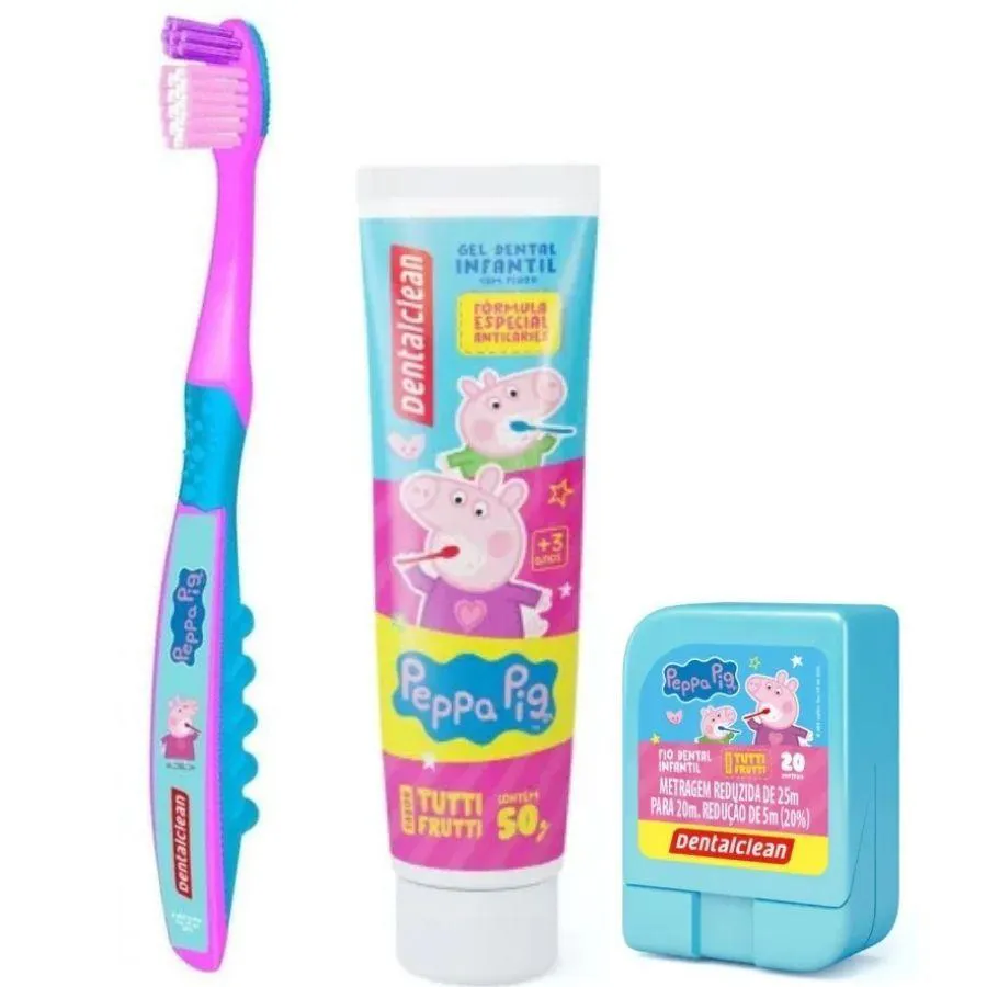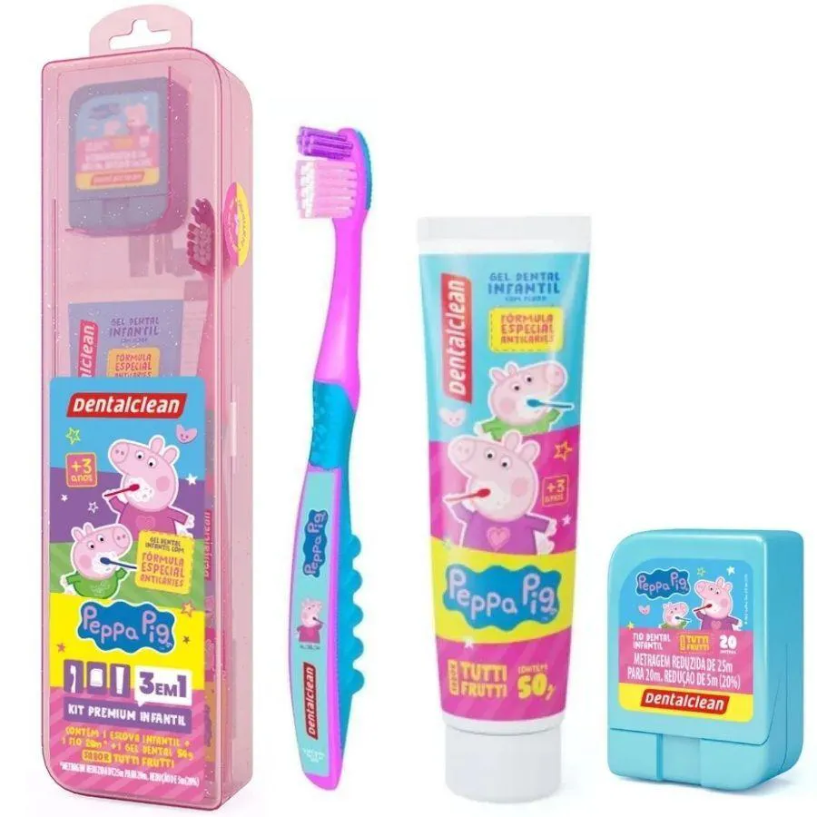 Kit Estojo Infantil Peppa Pig Rosa ( 1 Escova Infantil + 1 Fio Dental 20M + 1 Gel Dental 50G ) - Dentalclean