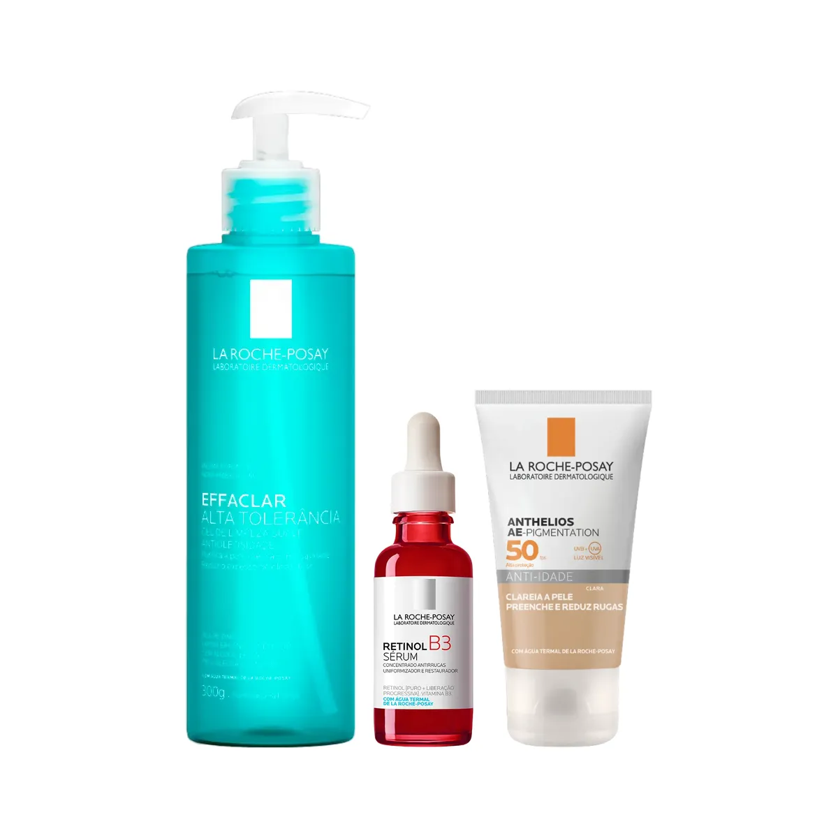 Kit Facial La Roche-PosayGel de Limpeza Effaclar Alta Tolerância 300g + Sérum Concentrado Anti-Idade Retinol B3 30ml + Protetor Solar Anthelios AE-Pigmentation FPS 50 Anti-Idade Pele Clara 40g