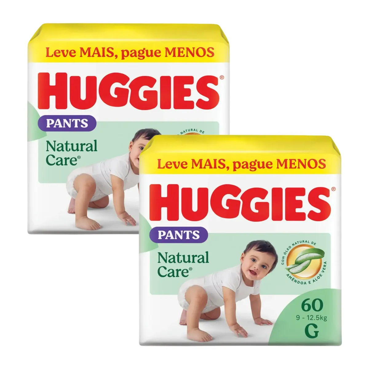 Kit Fralda Calça Huggies Pants Natural Care G 60 unidades 2 Pacotes