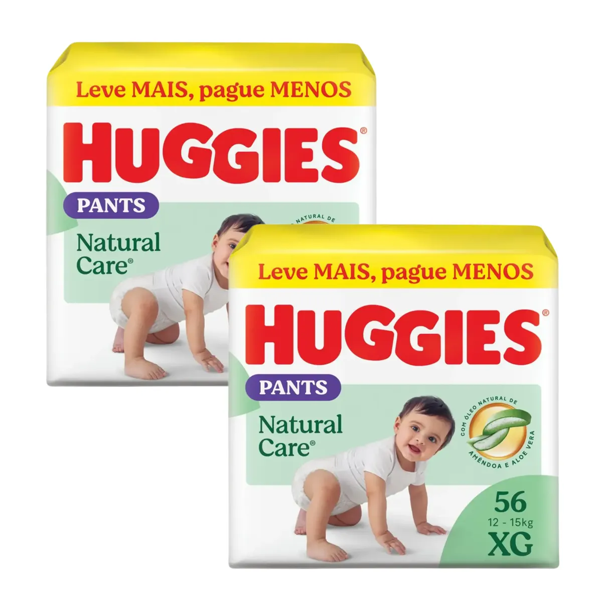 Kit Fralda Calça Huggies Pants Natural Care XG 56 unidades 2 Pacotes