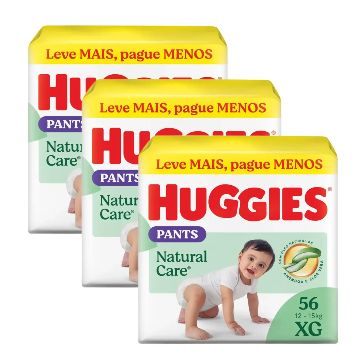 Kit Fralda Calça Huggies Pants Natural Care XG 56 unidades 3 Pacotes