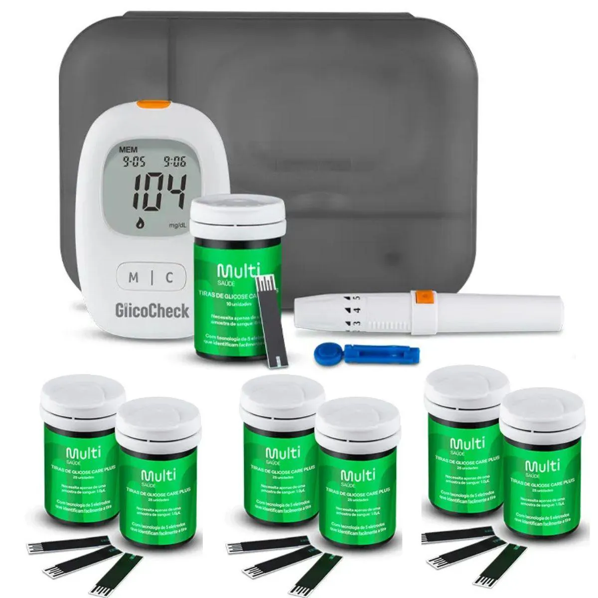 KIT GLICOCHECK CARE PLUS COM 160 TIRAS HC487K - MULTI saúde 1 MONITOR DE GLICEMIA GLICOCHECK CAREPLUS HC487 - MULTI SAÚDE