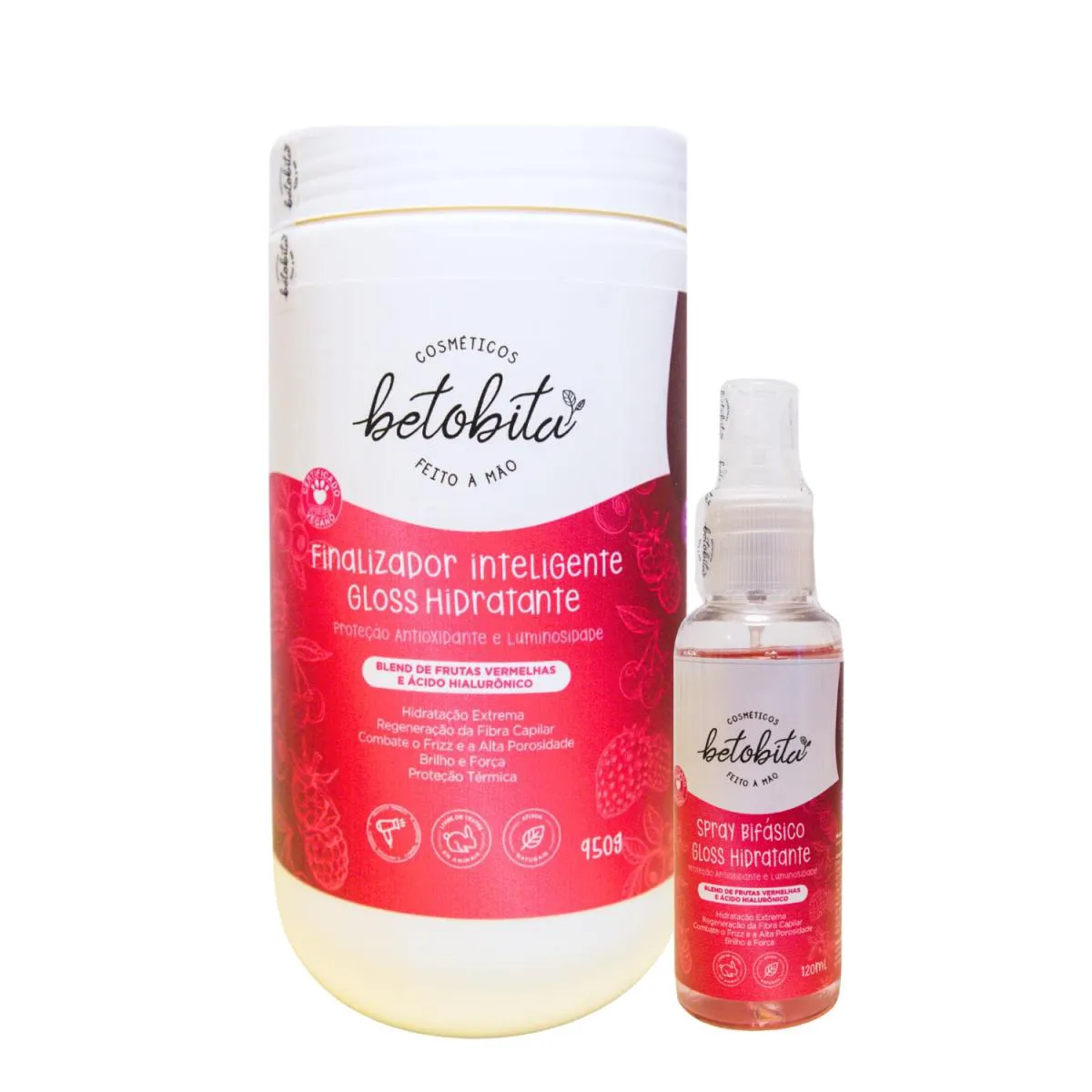 Kit Gloss Hidratante Finalizador 950G + Spray Bifásico - Betobita | Brilho Intenso, Hidratação e Proteção para Cachos