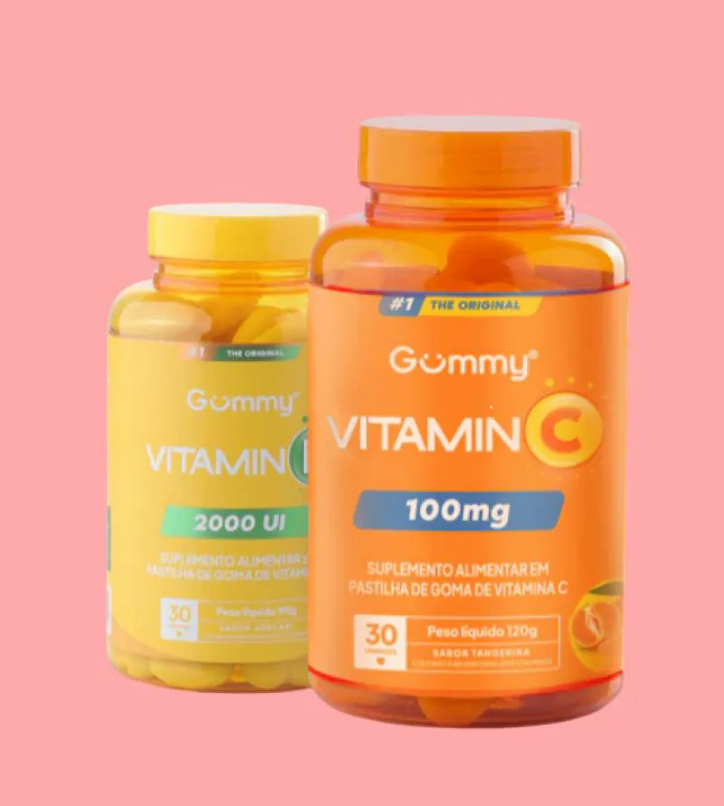 Kit Gummy Vitamina C Tangerina 100Mg com 30 + Vitamina D Abacaxi 2000Ui com 30 - Gummy