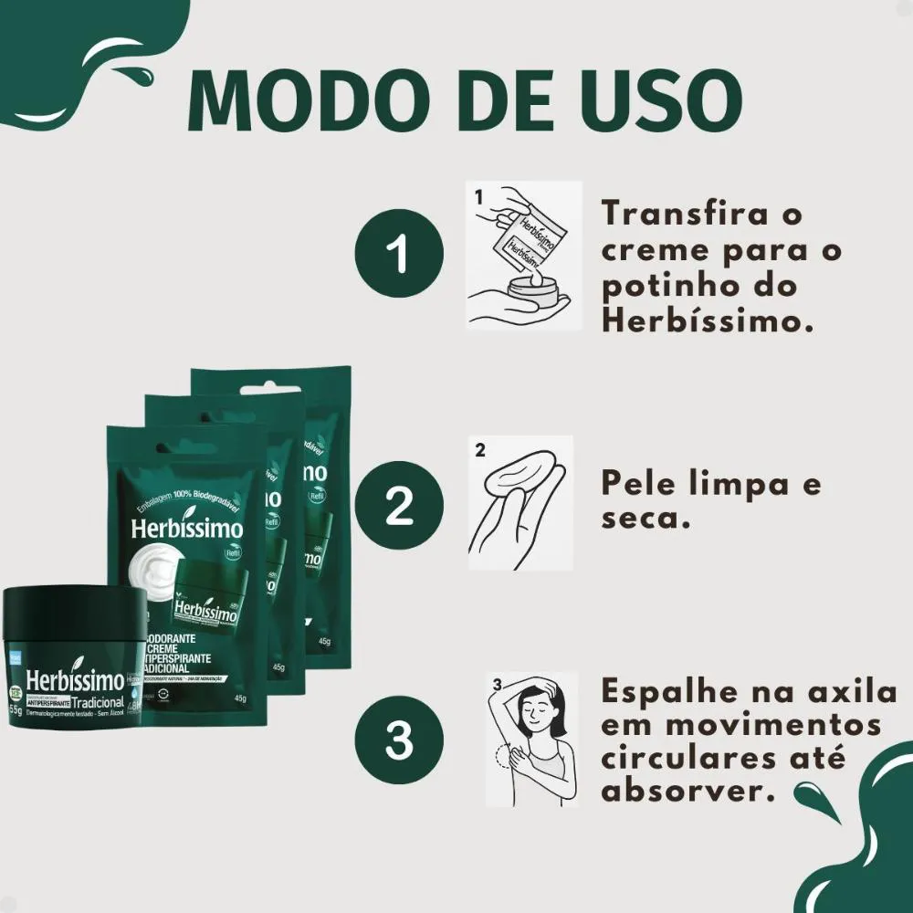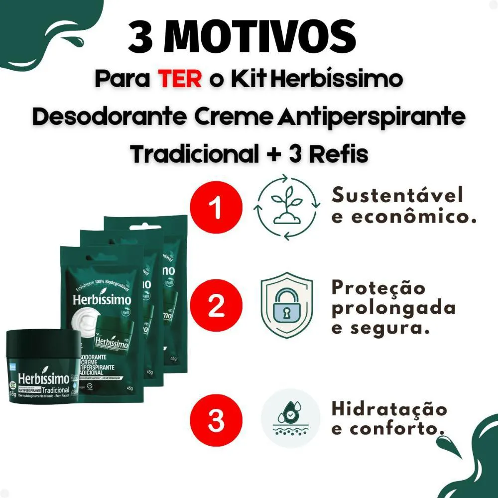 Kit Herbíssimo Desodorante Creme Antiperspirante Tradicional 55g + 3 Refis 45g
