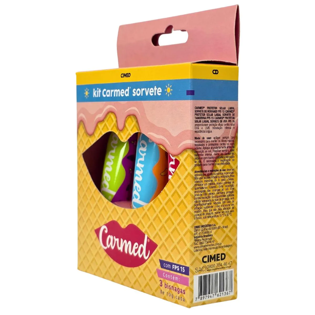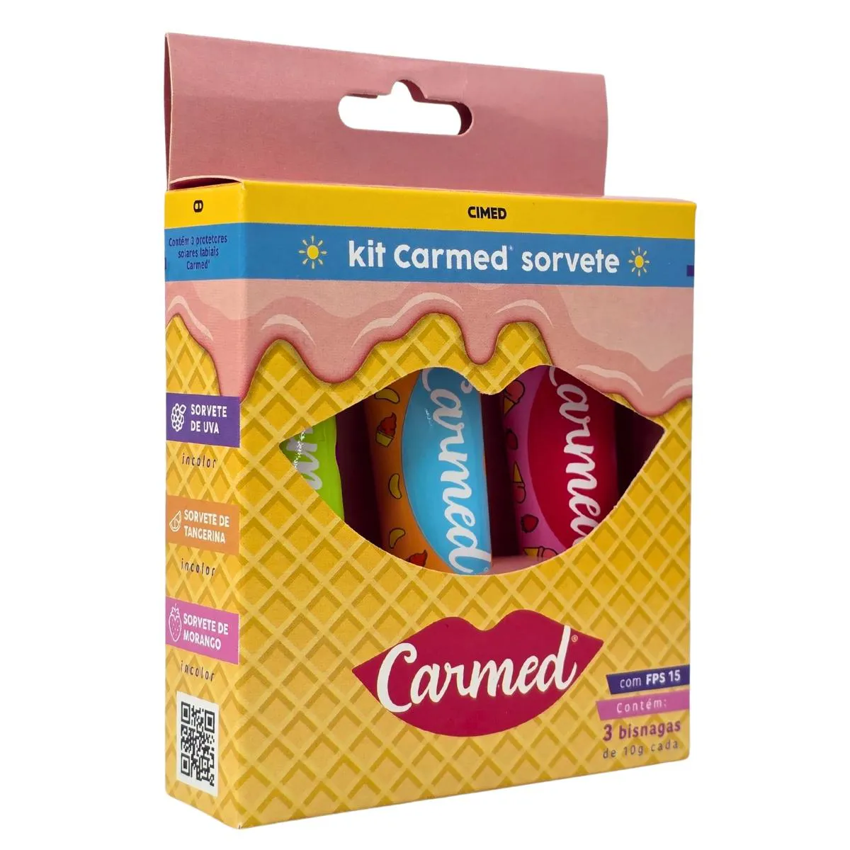 Kit hidratante Labial Sorvete Uva + Tangerina + Morango Carmed Cimed 10g Cada