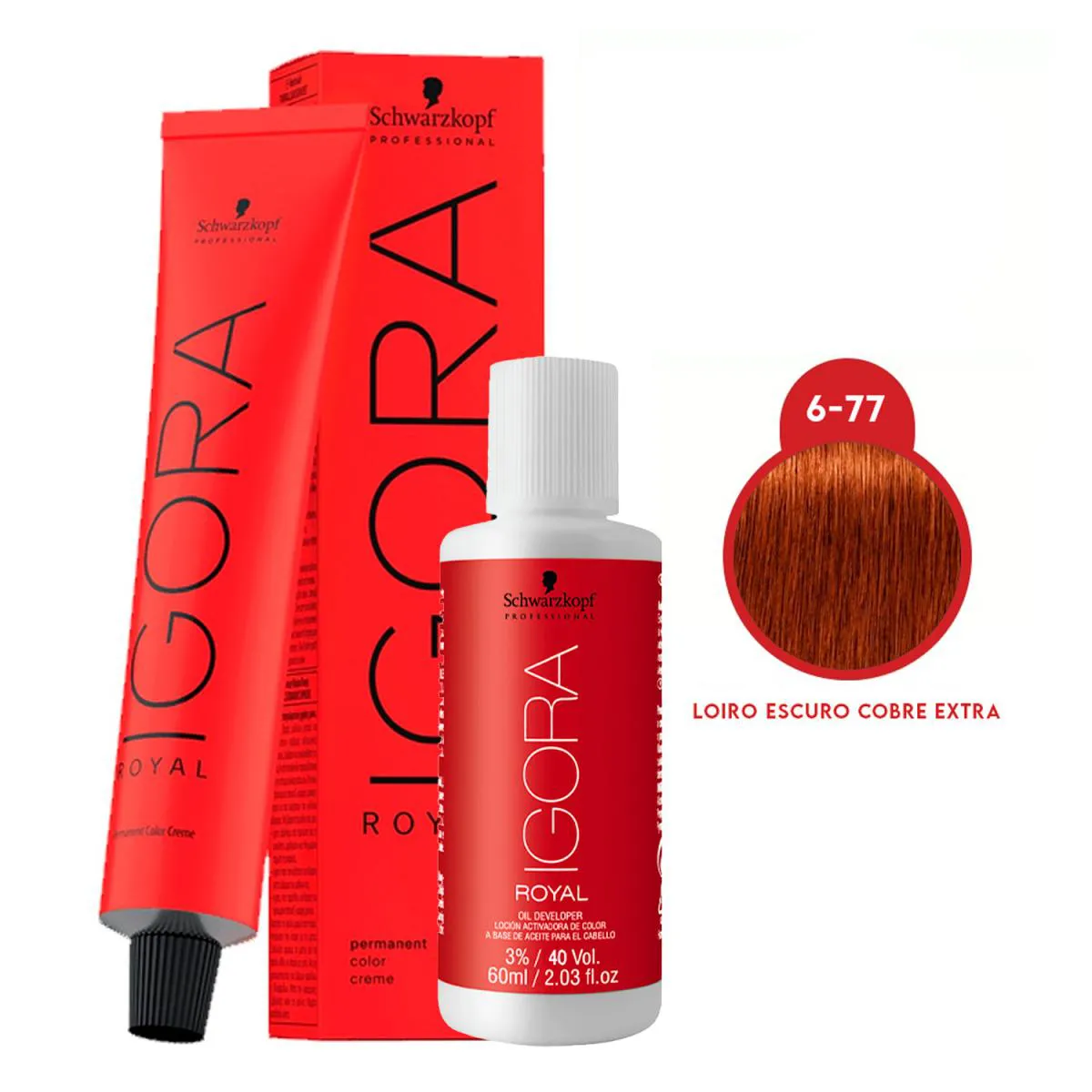 Kit Igora Royal Kit Coloração Schwarzkopf Professional 6-77 60g + Ox 40 Vol.