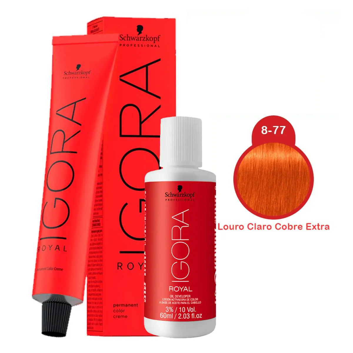 Kit Igora Royal Kit Coloração Schwarzkopf Professional 8-77 60g + Ox 10 Vol.