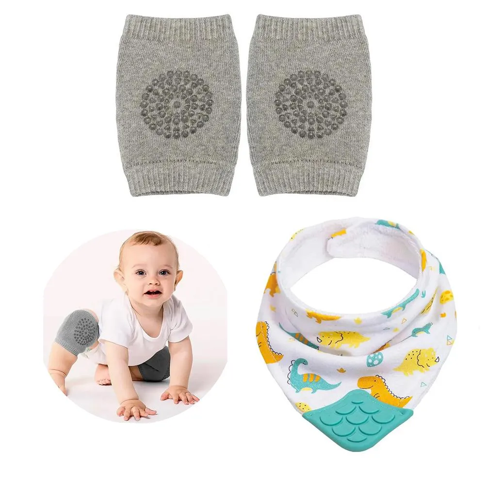 Kit Joelheira Infantil Antiderrapante +6M + Babador Bandana C/Mordedor Dino Buba