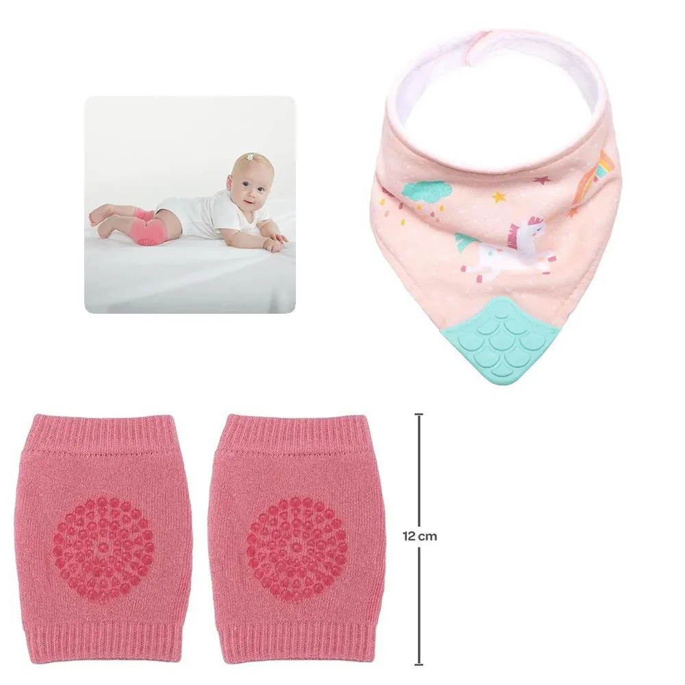 Kit Joelheira Infantil Antiderrapante +6M + Babador Bandana C/Mordedor Magic Unicórnio Buba