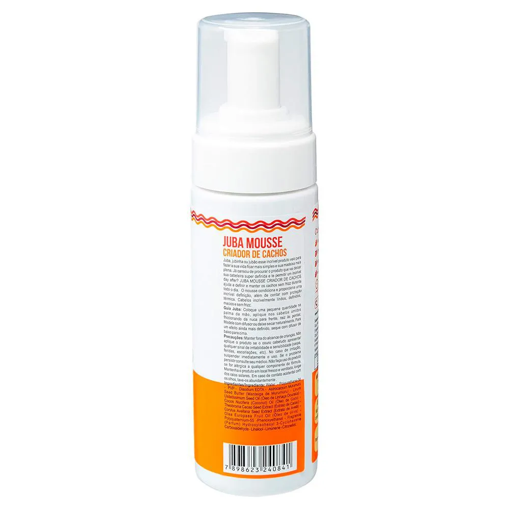 Descrição: O Juba Mousse Criador de Cachos é um produto desenvolvido para facilitar o cuidado e a definição de cachos em cabelos ondulados, cacheados e crespos. Este incrível produto promete tornar sua rotina capilar mais simples e seus cachos mais definidos e livres de frizz. Além de definir os cachos, o mousse também condiciona os fios e oferece proteção térmica. Como usar: Para obter os melhores resultados, siga estas instruções de uso:- - Coloque uma pequena quantidade do mousse na palma da mão.