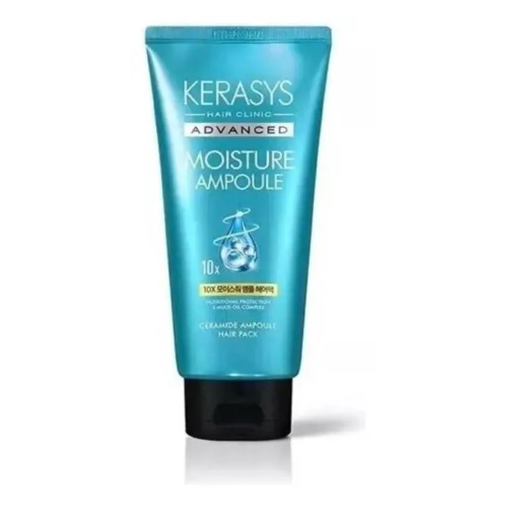 Você mistura as duas máscaras e equilibra o tratamento de acordo com as necessidades do seu fio. Contém: 01 Kerasys Advanced Ampoule Moisture 10x Hair Pack – Máscara de Hidratação 300ml: Máscara capilar concentrada para cabelos ressecados e porosos.