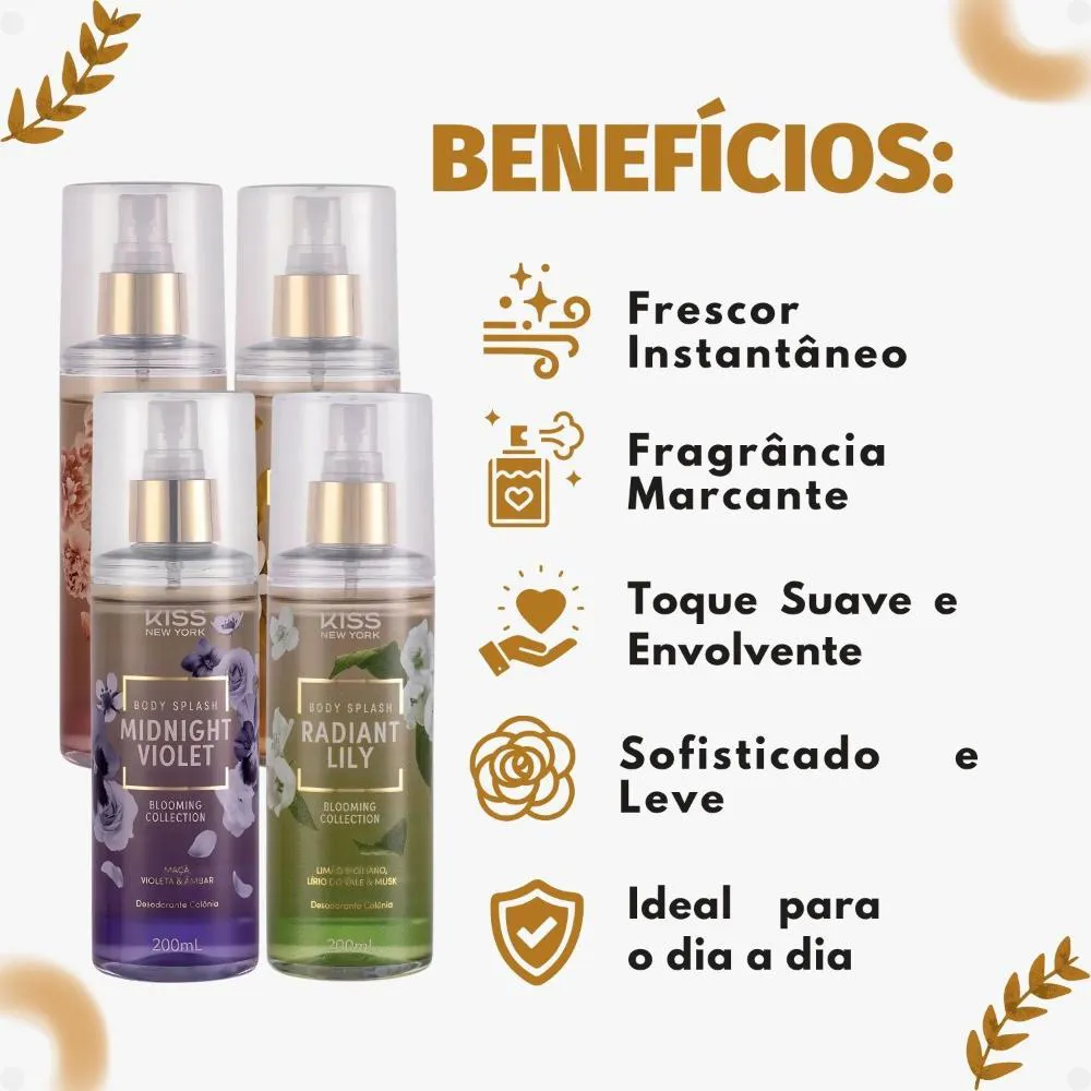 Kit Kiss New York Body Splash Blooming Collection: Peony Dream, Vanilla Passion, Midnight Violet e Radiant Lily