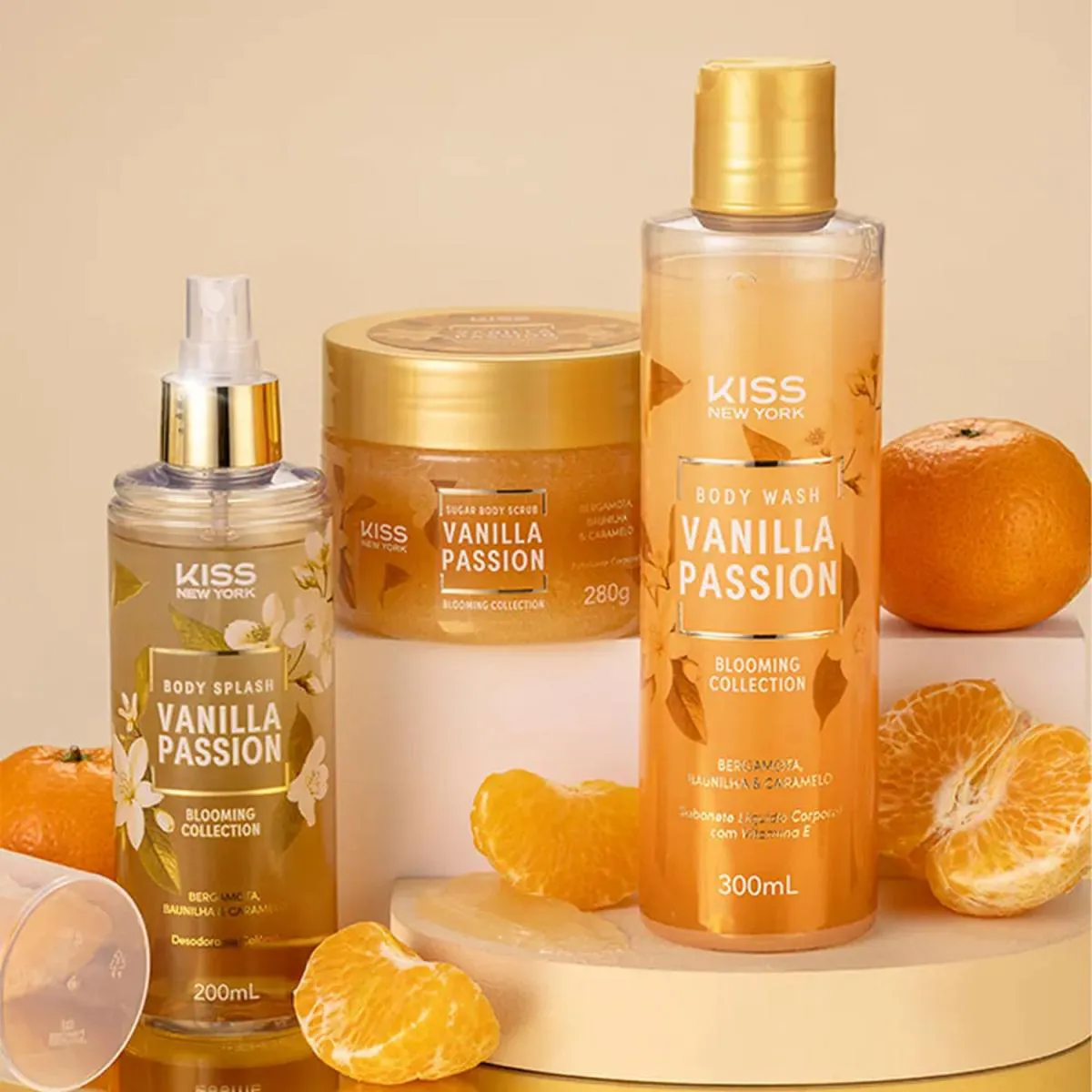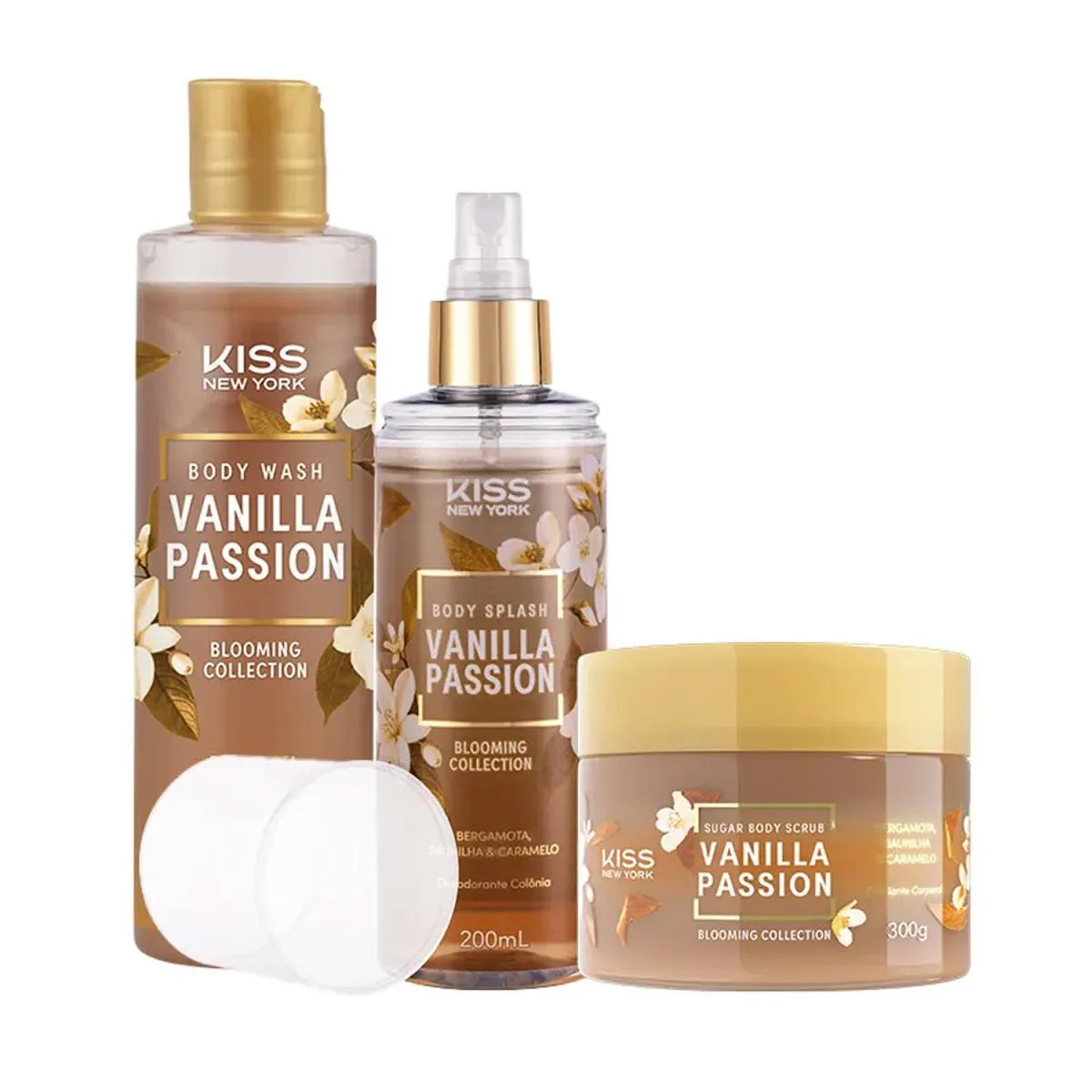 Kiss New York Vanilla Passion Body Splash + sabonete Líquido + Sugar body Scrub (3 Produtos)