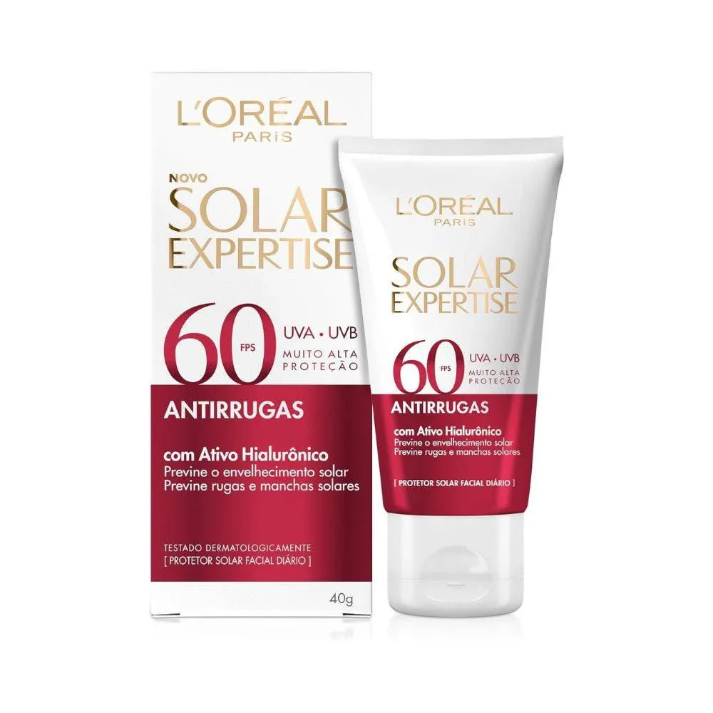 - Protetor Solar Expertise Antirrugas FPS 60 (40g): Proporciona alta proteção contra os raios UVA/UVB, ajudando a prevenir o envelhecimento precoce da pele. Enriquecido com ácido hialurônico, hidrata e suaviza linhas finas, mantendo a pele protegida e saudável.