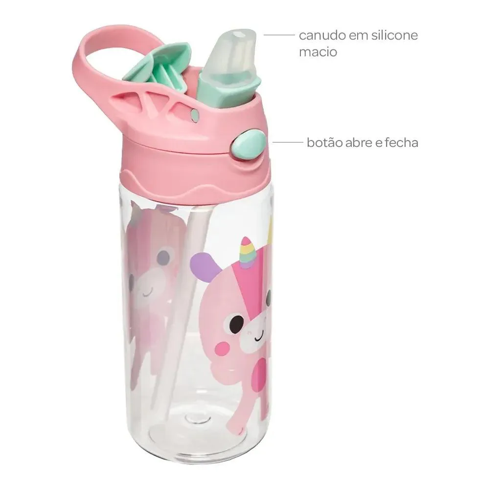 - Capacidade Ideal: Comporta até 450ml, ideal para uso escolar e passeios.