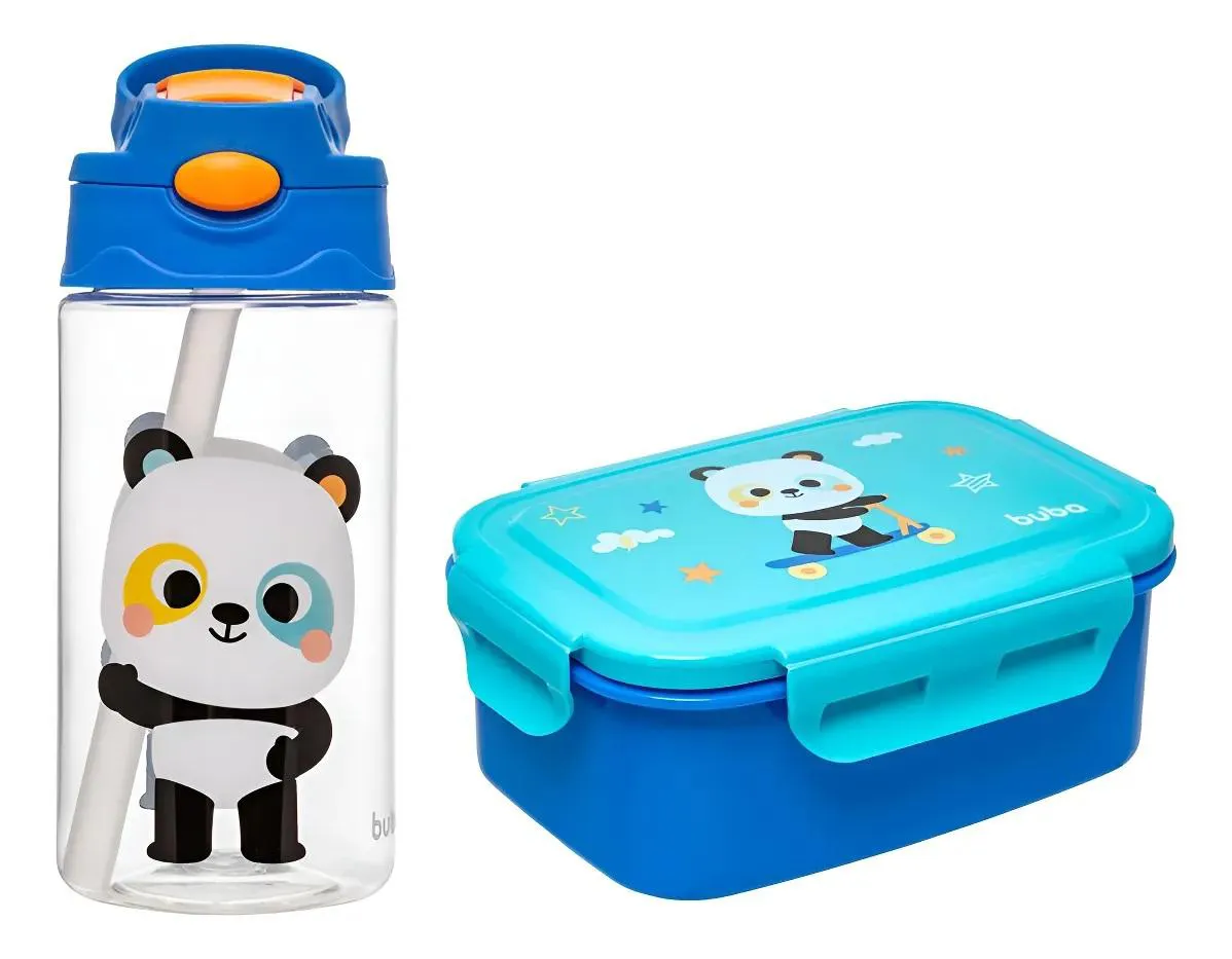 Kit Lanche Garrafinha Tritan + Bento Box Inox Zoo Buba