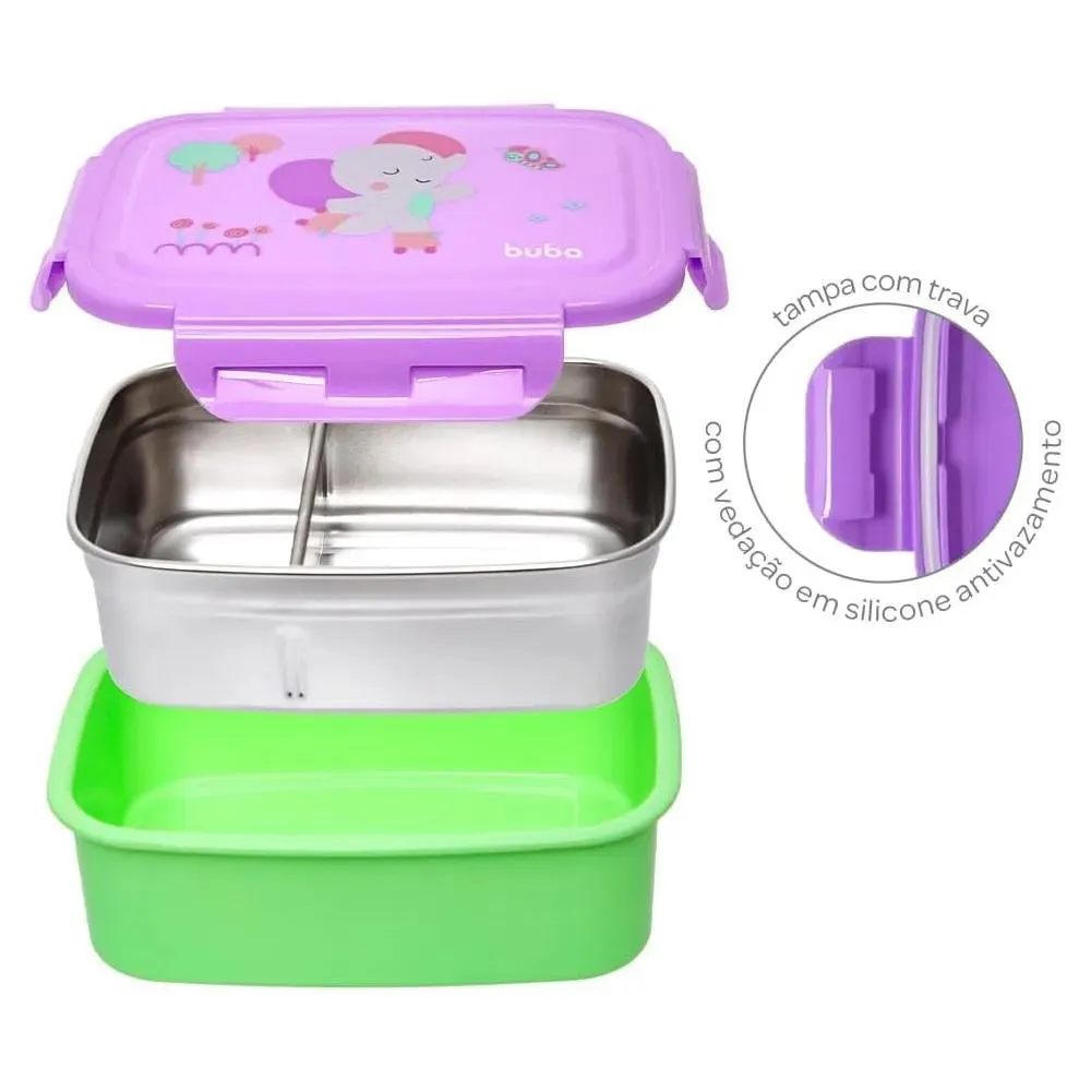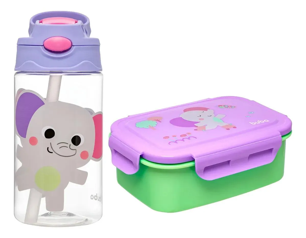 Kit Lanche Garrafinha Tritan + Bento Box Inox Zoo Buba
