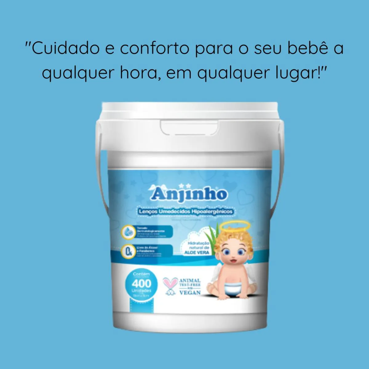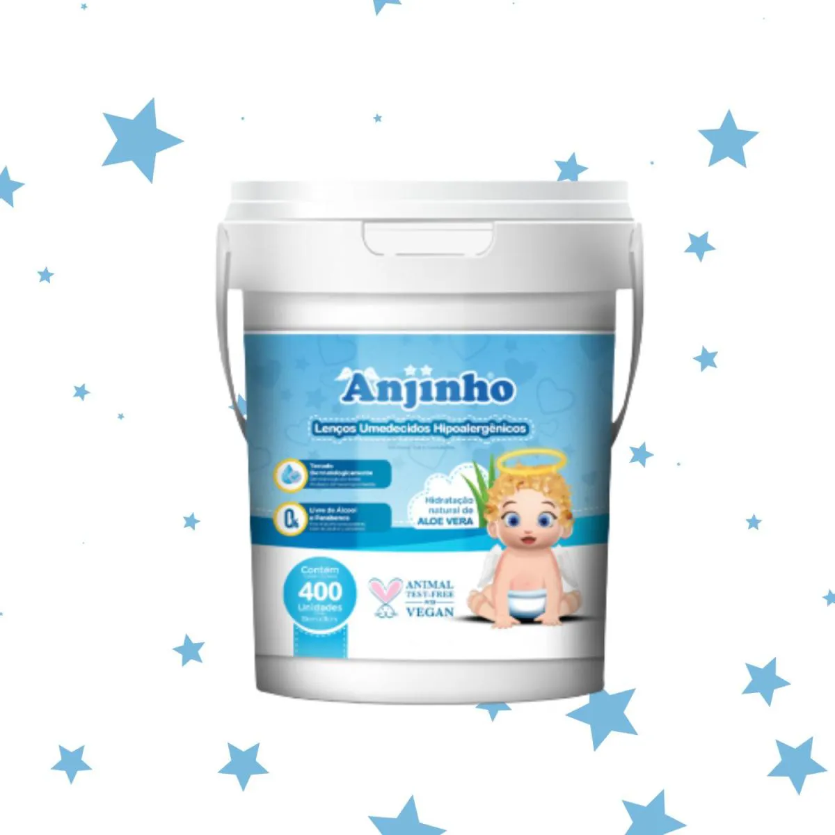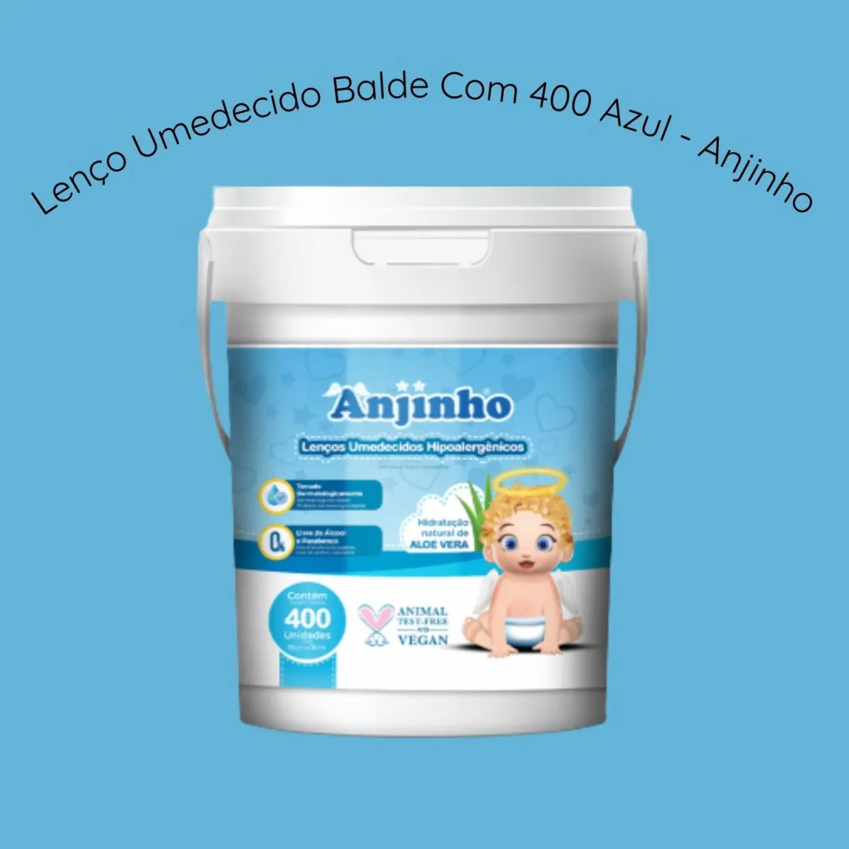 1 balde com 400 lenços umedecidos – Azul Anjinho Imagens meramente ilustrativas. Todas as Informações Divulgadas são de Responsabilidades Exclusivas do Fabricante / fornecedor.