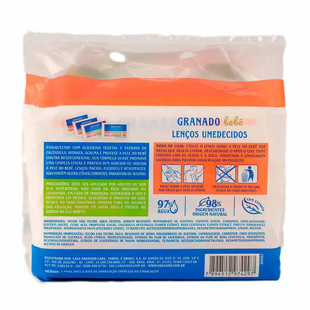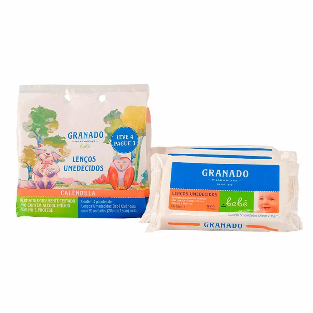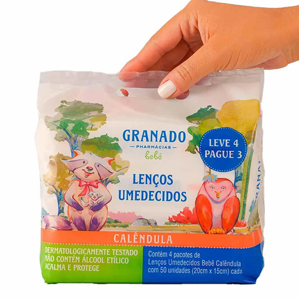 Kit Lenços Umidecidos Granado Bebê Calêndula Pacote Leve 4 Pague 3