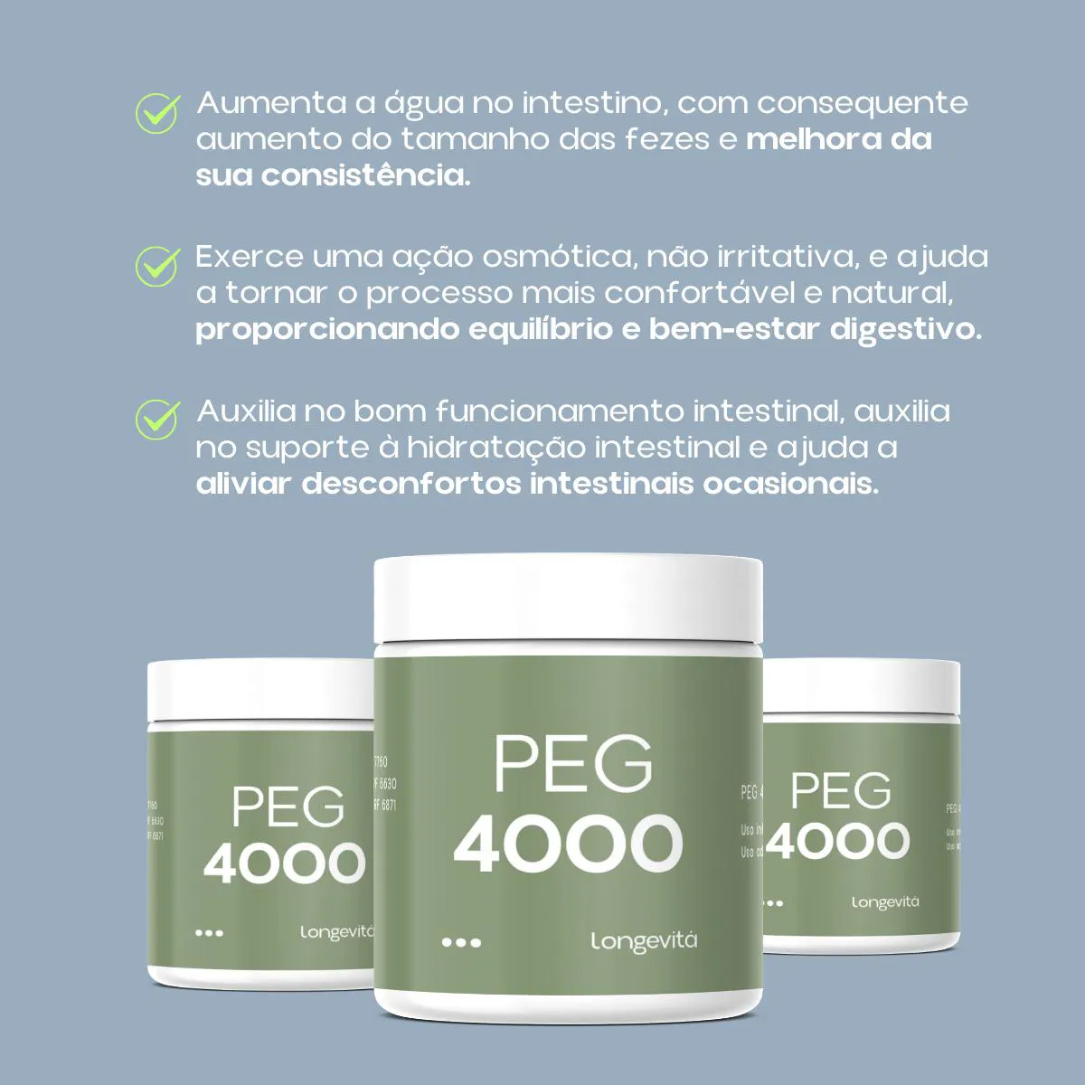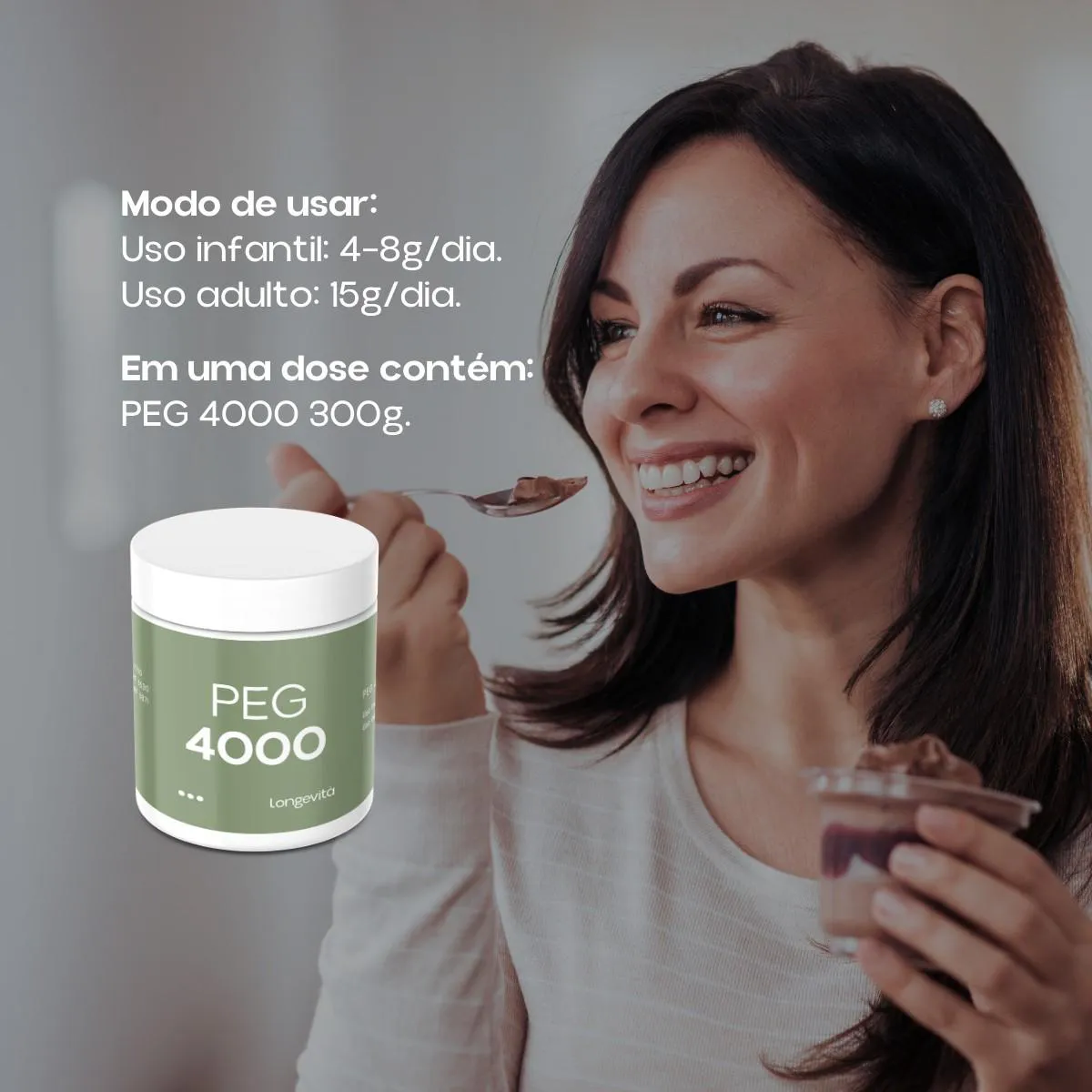 - PEG4000: Adultos 15g/dia | infantil 4–8g/dia (conforme necessidade)