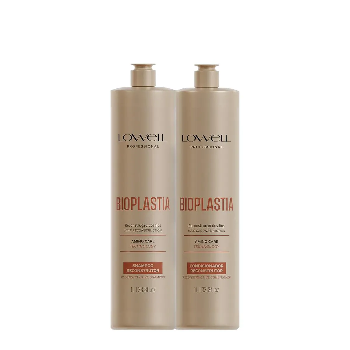Este Kit Contém Lowell Bioplastia Reconstrutor - shampoo 1L: promove uma limpeza suave e eficaz, fortalecendo cabelos danificados e quebradiços. Sua fórmula penetra na fibra capilar, reduzindo quebra e restaurando o brilho, a resistência e a saúde dos fios. Lowell Bioplastia Reconstrutor - condicionador 1L: repara e sela os fios profundamente, combate a quebra e reduz 13% dos danos. Proporciona maciez, brilho e resistência visível desde a primeira aplicação.Conselho de Aplicação