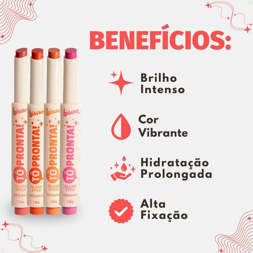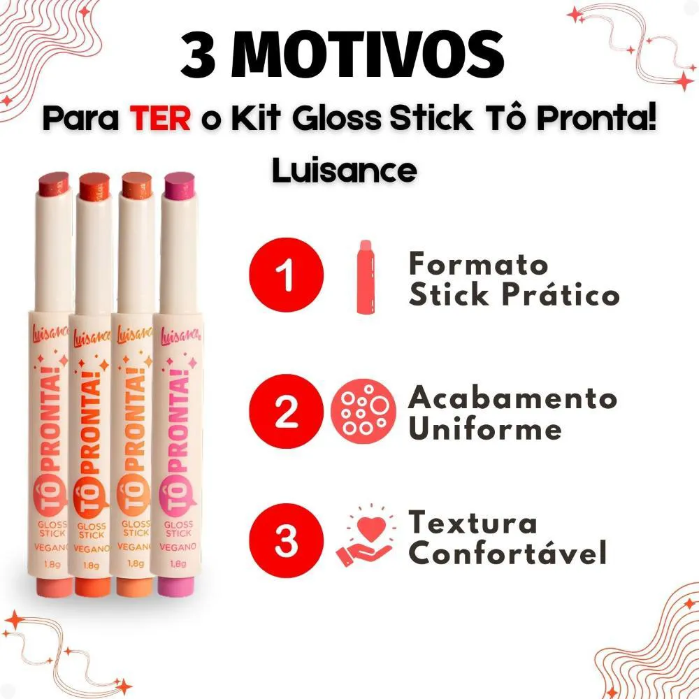 Kit Luisance gloss Stick Tô Pronta!: Arrasei, Que Tudo, Ta Sabendo? e Tô On! L1120