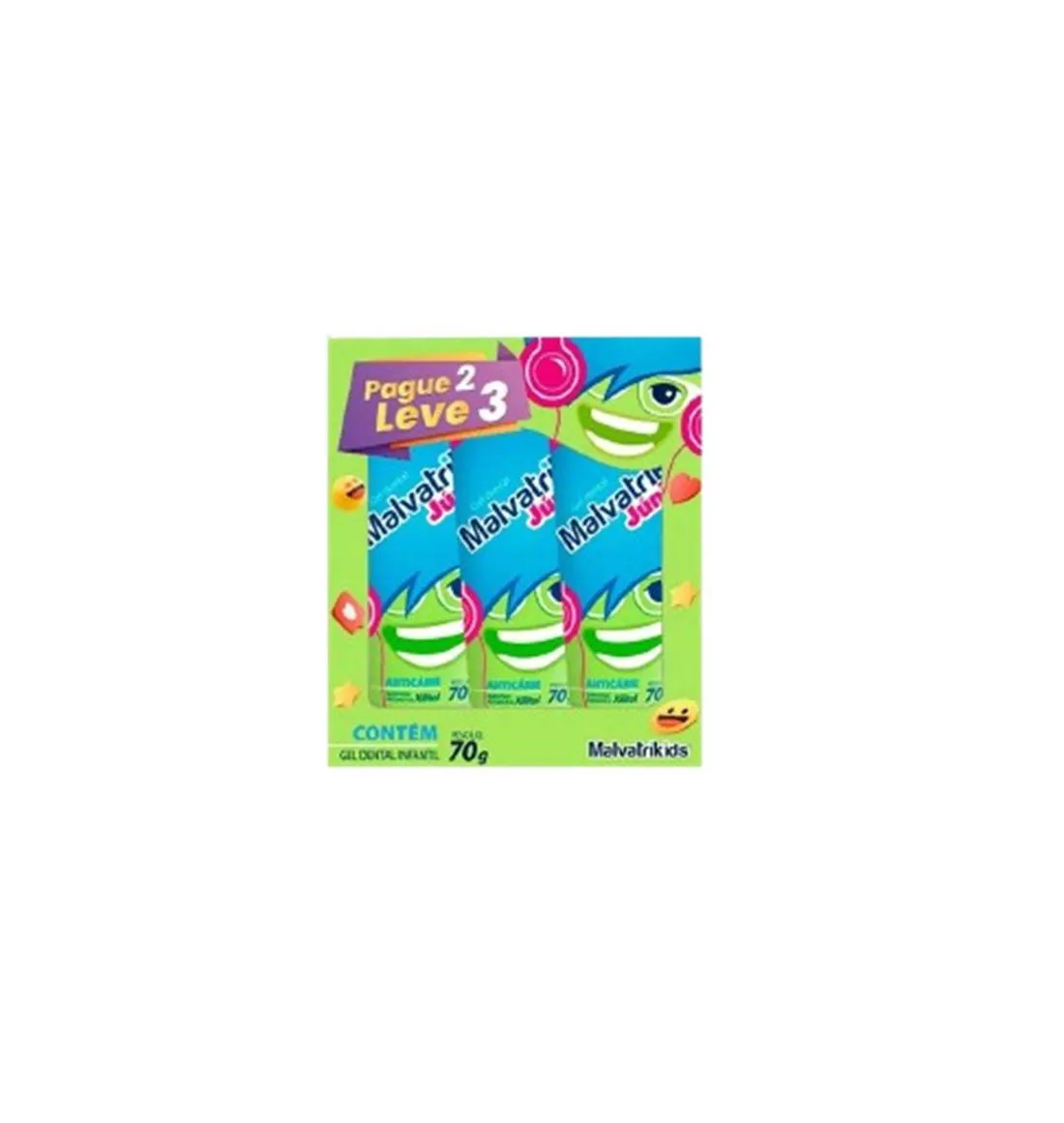 Kit Malvatrikids Júnior gel dental Inf Tutti-frutti 3x70g