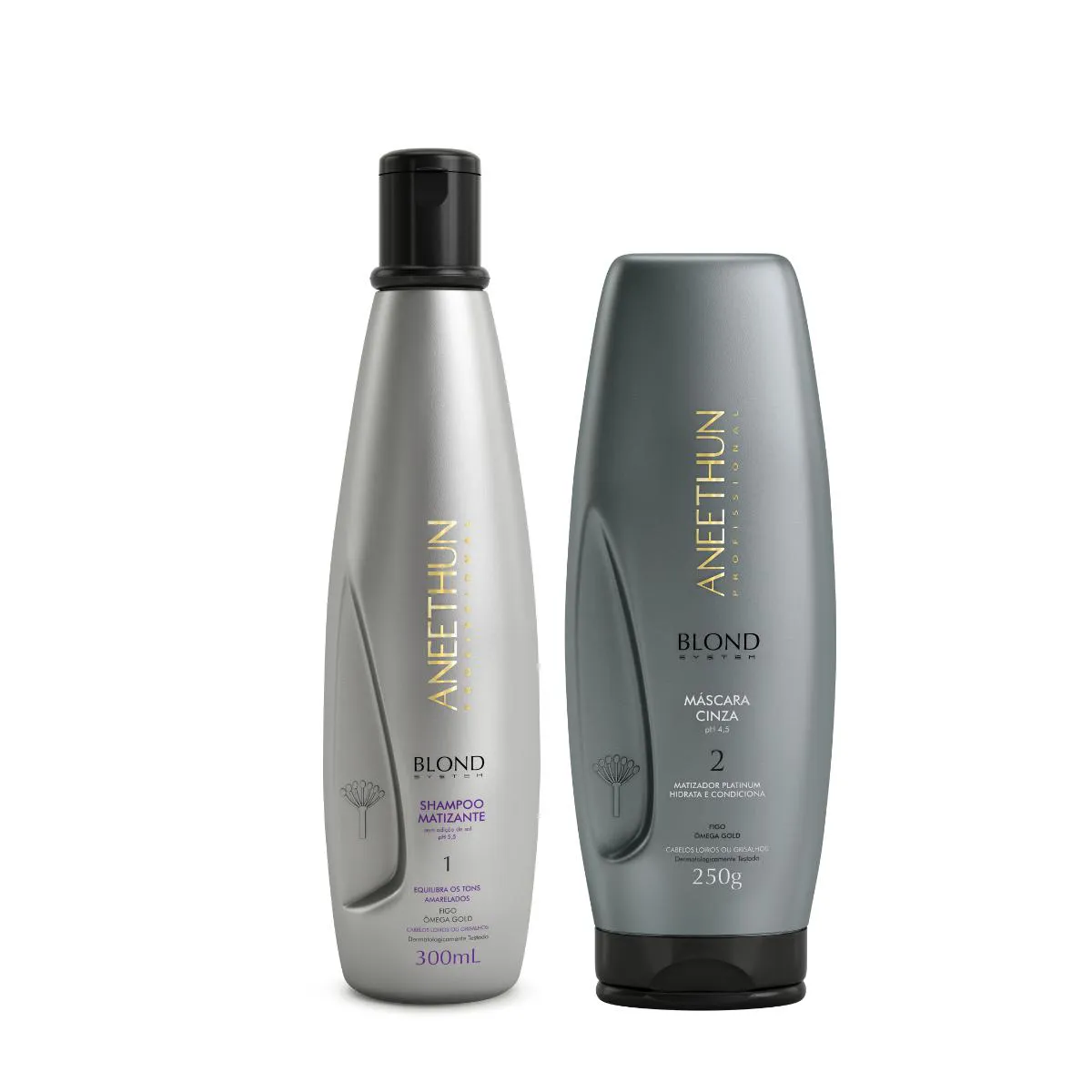Kit Matizante Blond System Shampoo 300ml e Mascara Cinza 250g - Aneethun