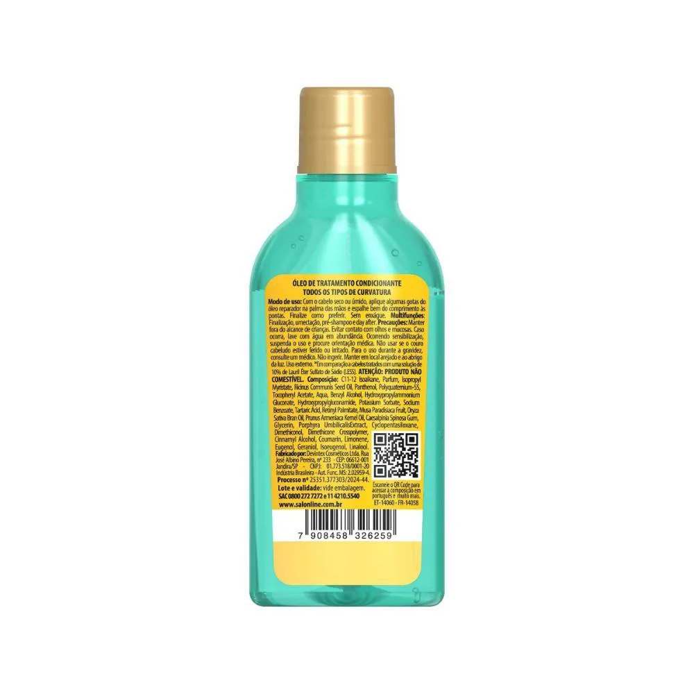 Com o cabelo seco ou úmido, aplique algumas gotas do óleo reparador na palma das mãos e espalhe bem do comprimento às pontas. Finalize como preferir. Sem enxágue.