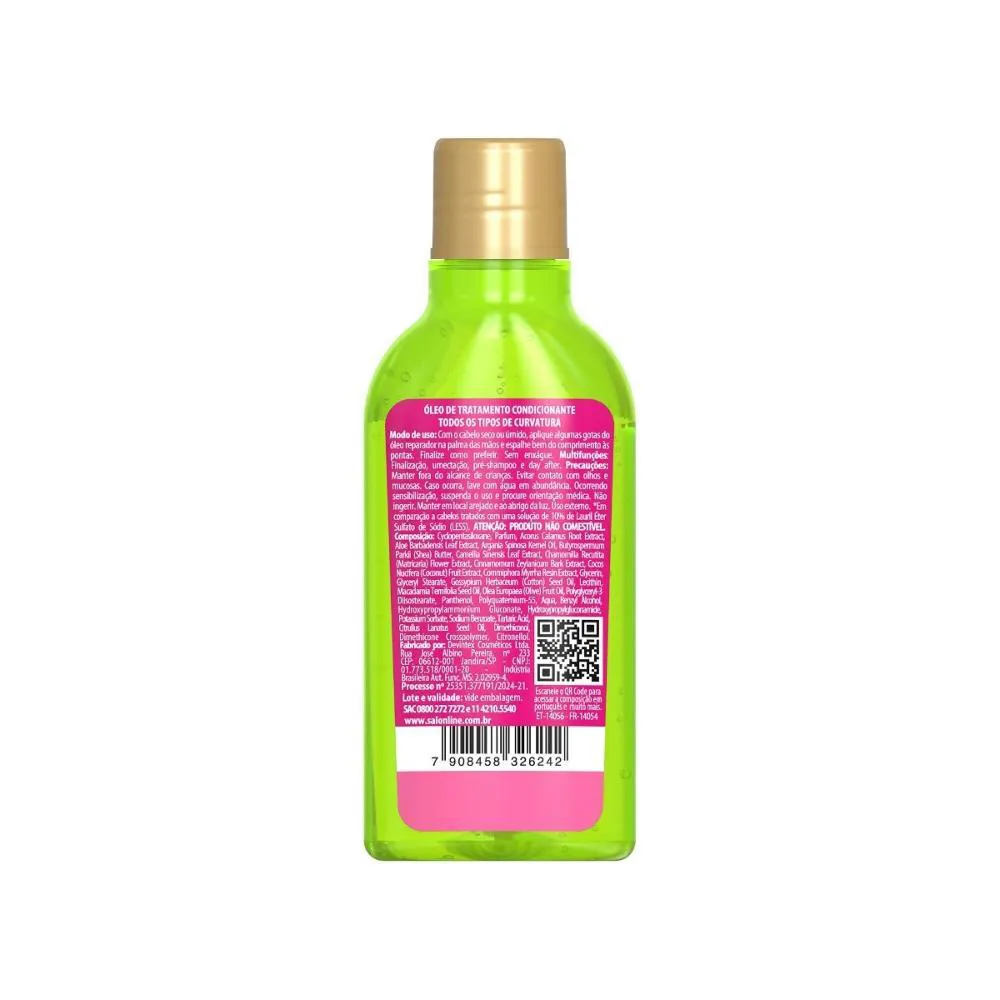 Com o cabelo seco ou úmido, aplique algumas gotas do óleo reparador na palma das mãos e espalhe bem do comprimento às pontas. Finalize como preferir. Sem enxágue.