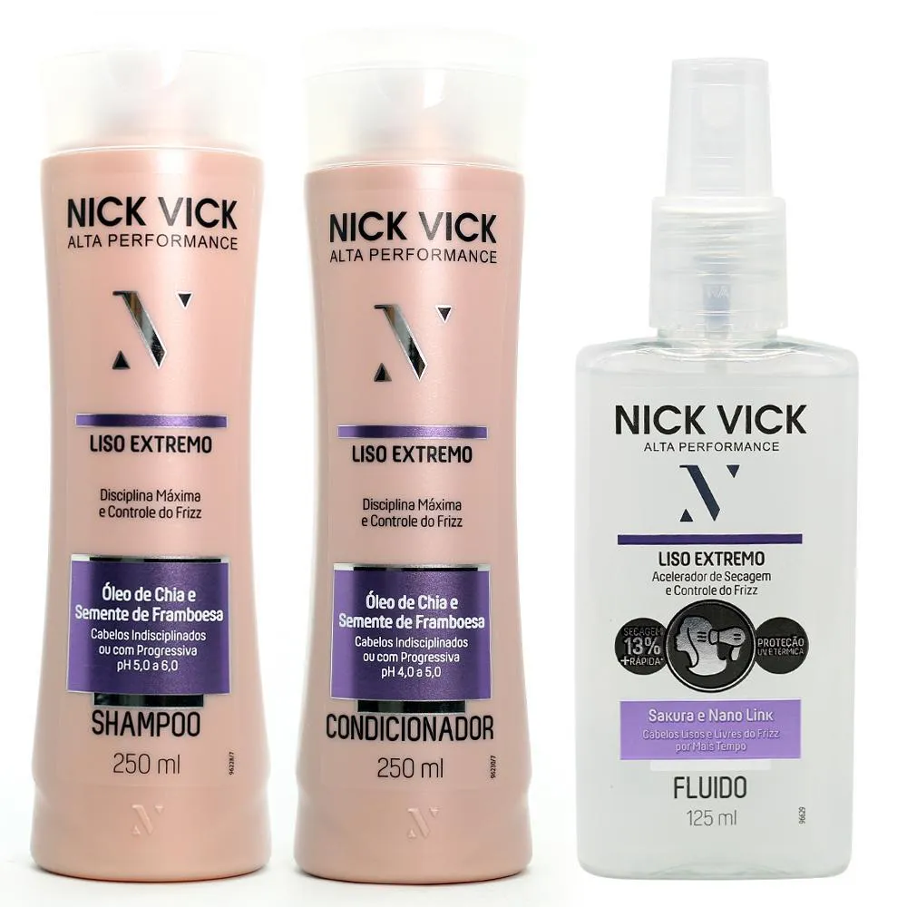 Kit Nick Vick Liso Extremo Shampoo Cond. Fluido Acelerador