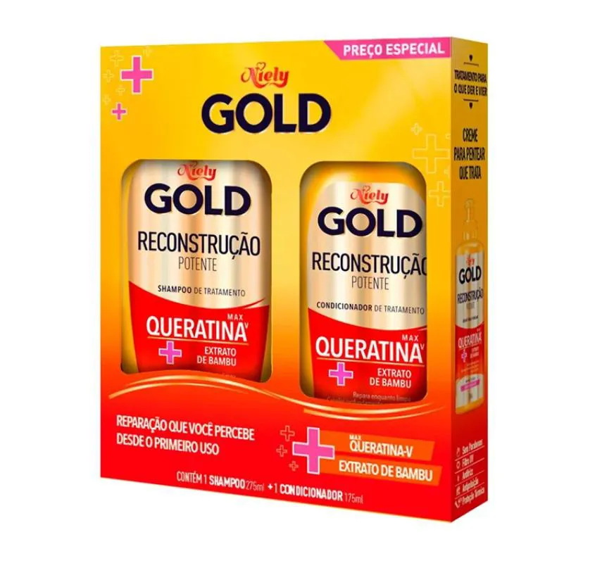 KIT NIELY GOLD QUERATINA RECONSTRUçãO SHAMPOO 275ML + CONDICIONADOR 175ML