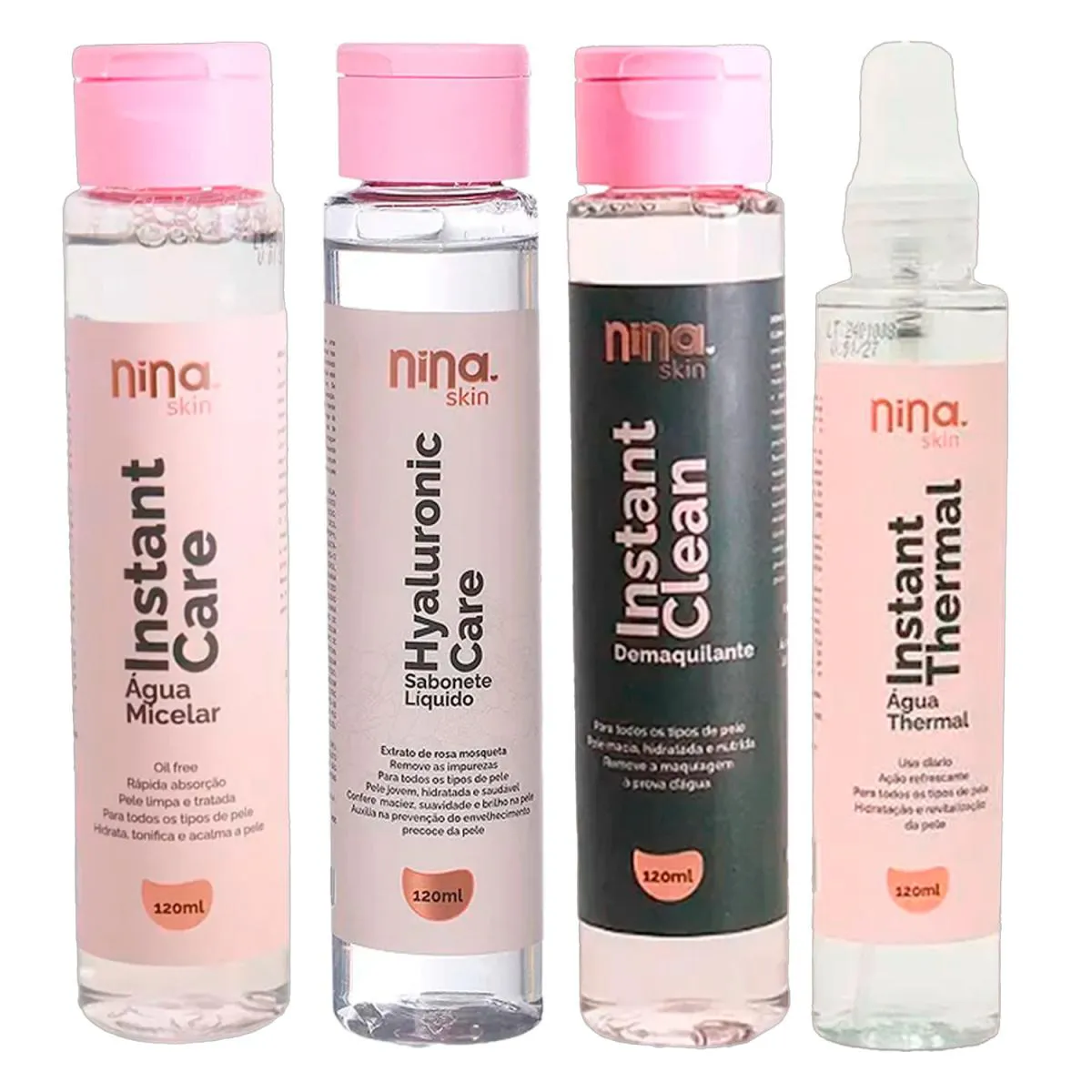 Kit Nina Make Up Sabonete Hyaluronic Care + Água Micelar Instant Care + Água Thermal Instant Thermal + Demaquilante Instant Clean