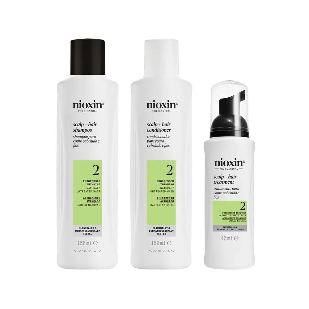 1- Kit Nioxin Volume & Thinning Sistema 2 Espessamento Cabelo Natural Afinamento Avançado 3 Produtos Sh.