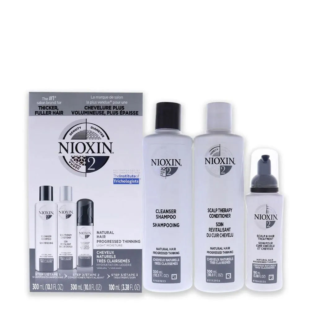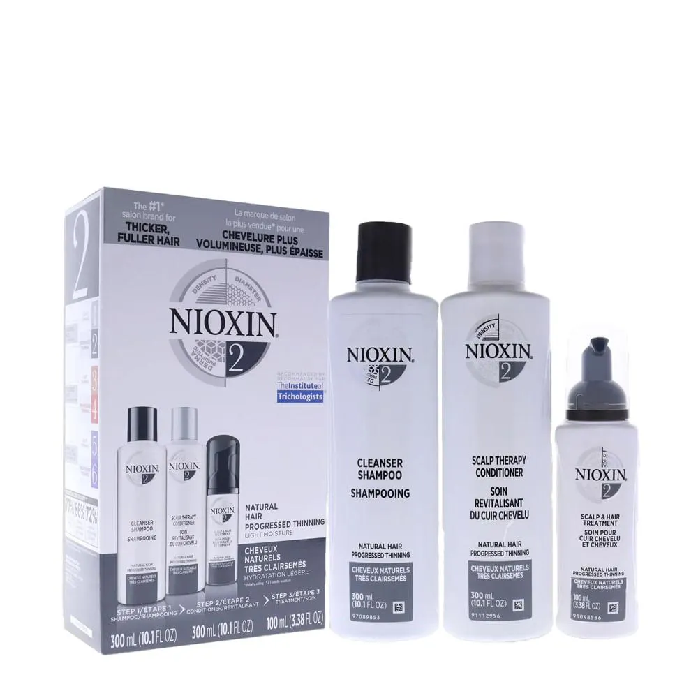O Kit Nioxin System 2 - Shampoo 300ml + Condicionador 300ml + Finalizador 100ml é um tratamento profissional de três passos desenvolvido para cabelos naturais com afinamento avançado, ideal para quem busca fios mais densos, volumosos e saudáveis. Este sistema fortalece os cabelos contra danos e quebras, revitaliza o couro cabeludo e promove um ambiente ideal para o crescimento capilar. O shampoo limpa profundamente, removendo sebo e resíduos, o condicionador hidrata e aumenta a resistência dos fios, e o finalizador (leave-in) nutre e protege o couro cabeludo com ativos antioxidantes. Perfeito para uso diário, o kit é clinicamente testado e proporciona resultados visíveis em cerca de 30 dias, conforme indicado pela marca.