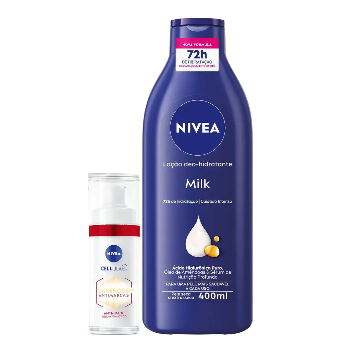 Kit Nivea Sérum Facial Cellular Luminous 630® Antimarcas Anti-idade 30ml + Loção Hidratante Nivea Milk Pele Seca a Extrasseca 400ml
