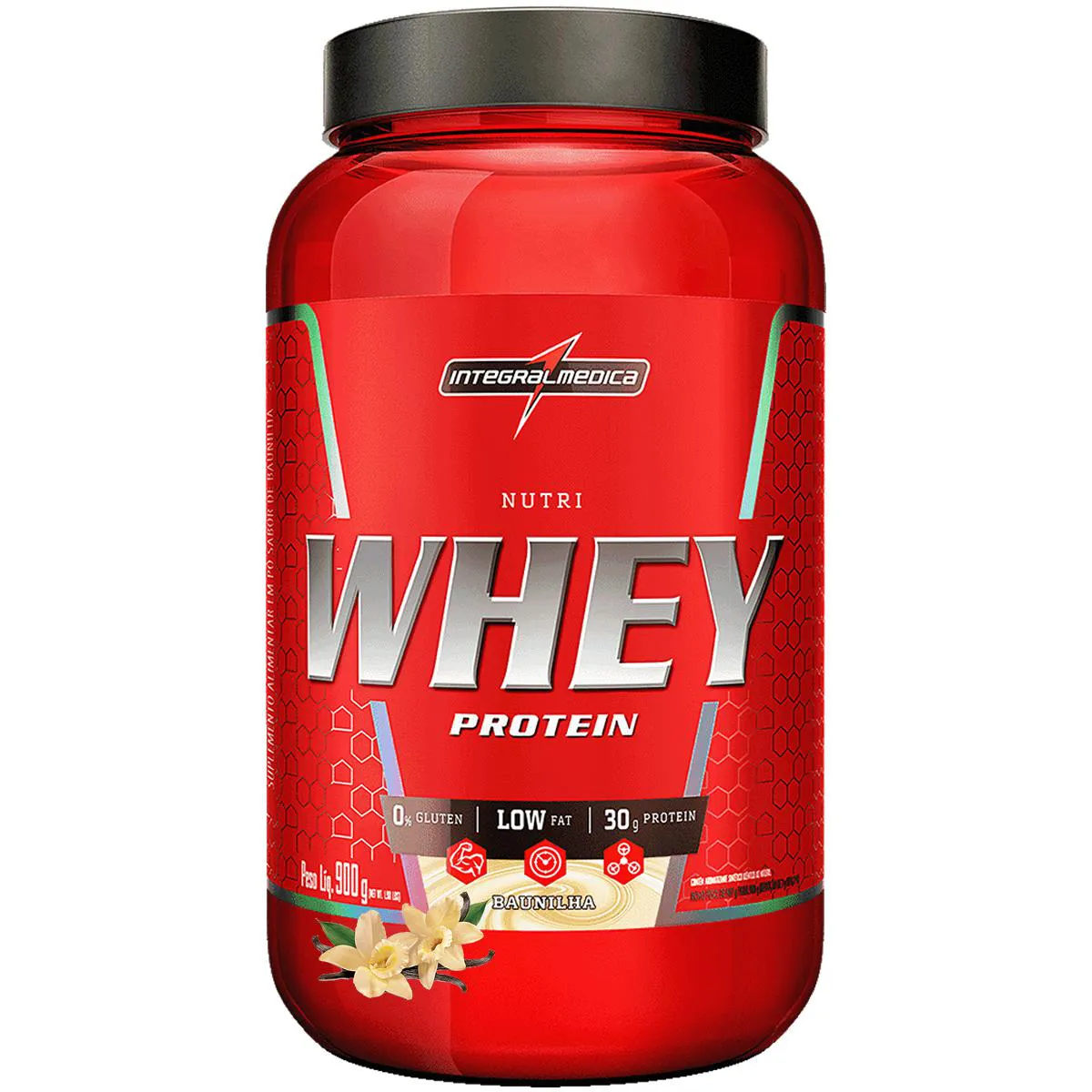 - Whey (baunilha): ideal no pós-treino ou como lanche proteico