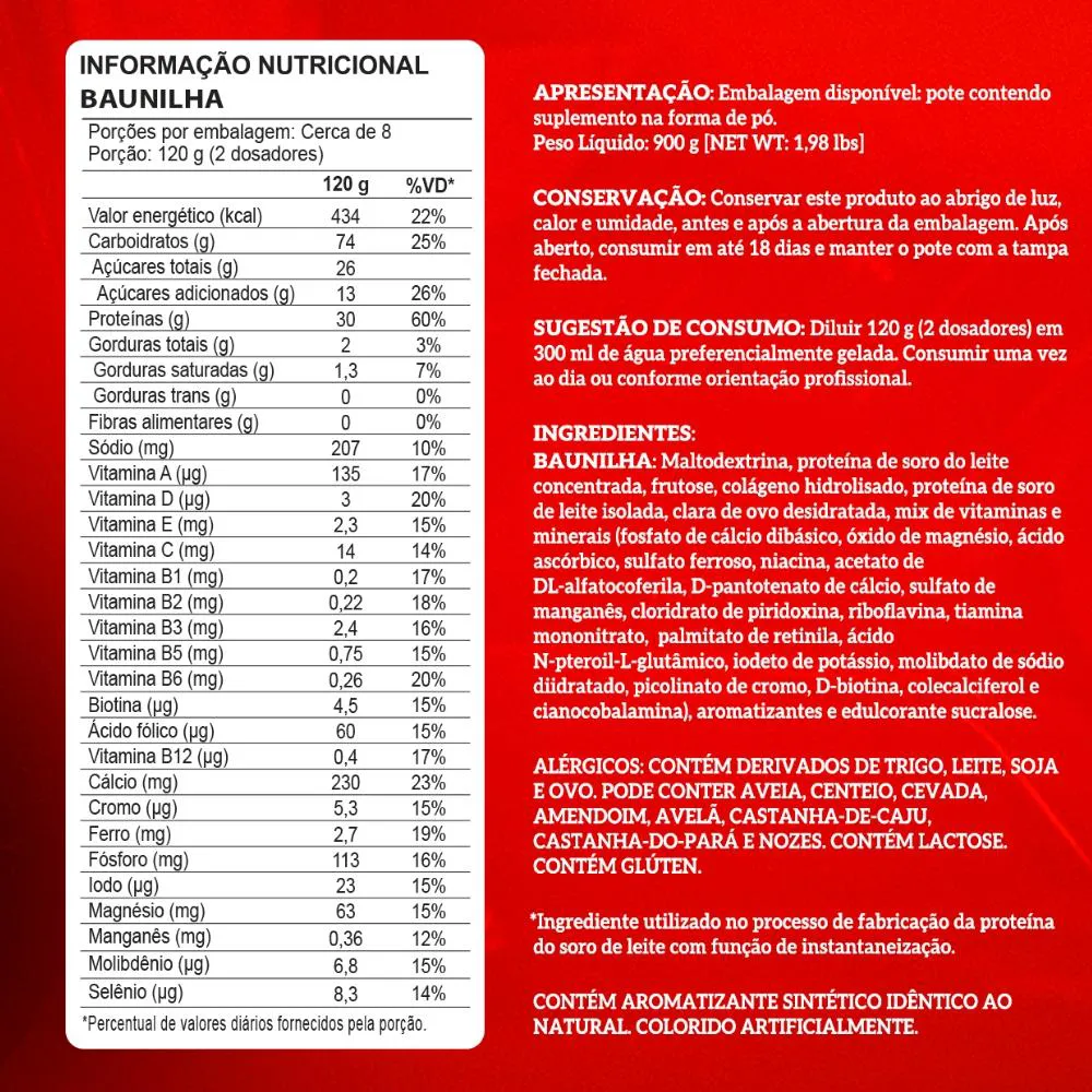 - Sabor baunilha: leve e versátil para shakes e receitas